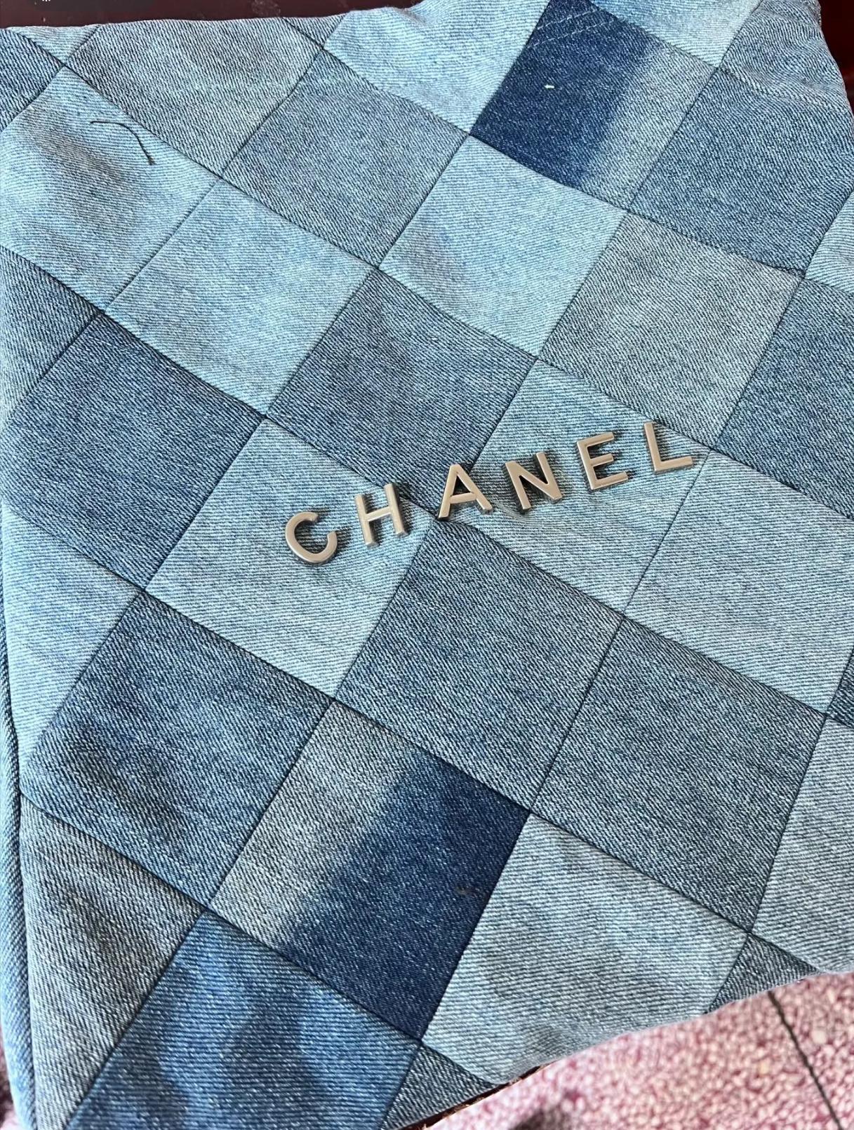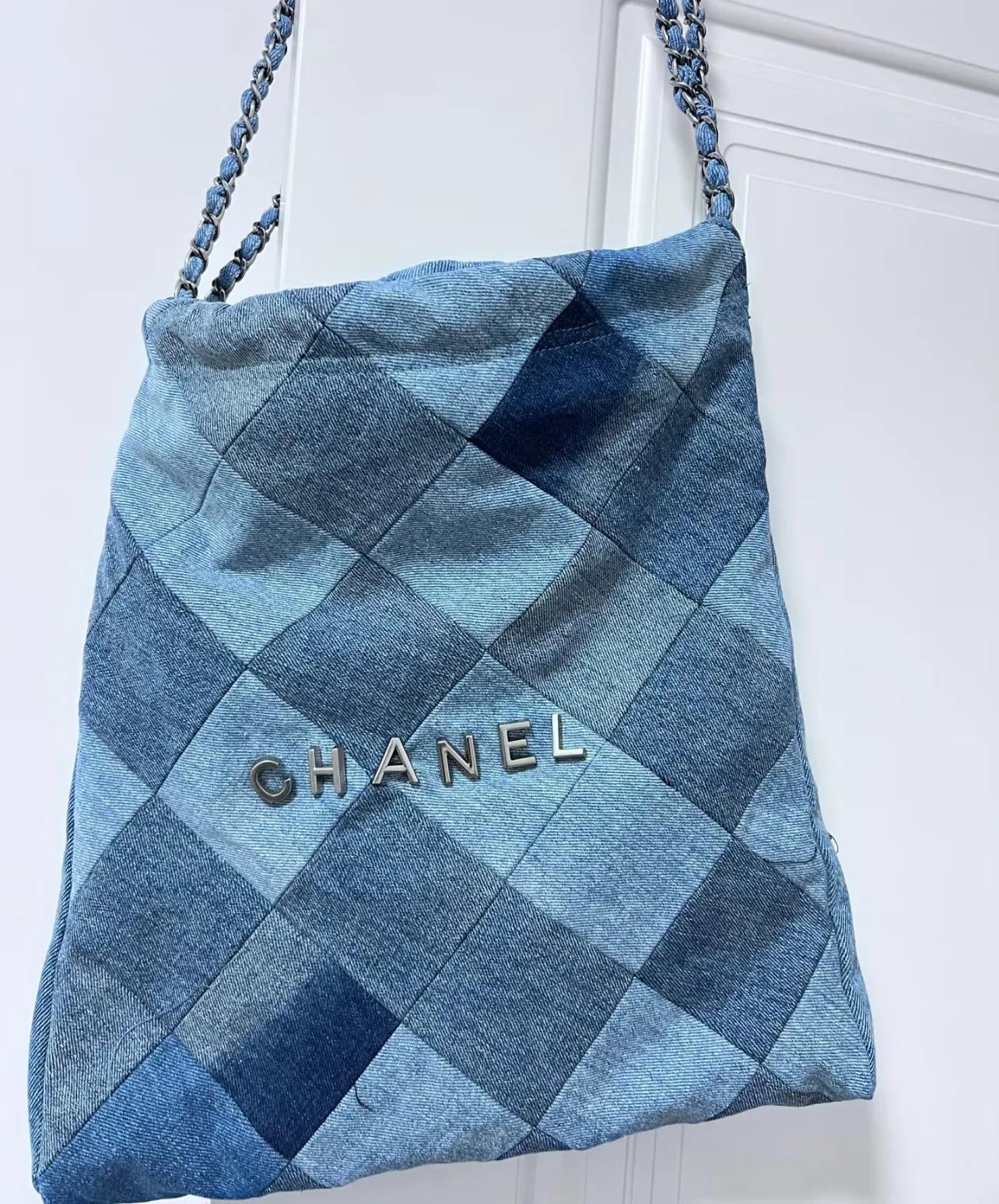 也不知道誰先想出來的,把牛仔布先裁成小正方塊,然後再菱格拼接起來,這樣出來的包包,就跟小羊皮走線一樣,多了幾分時尚感。