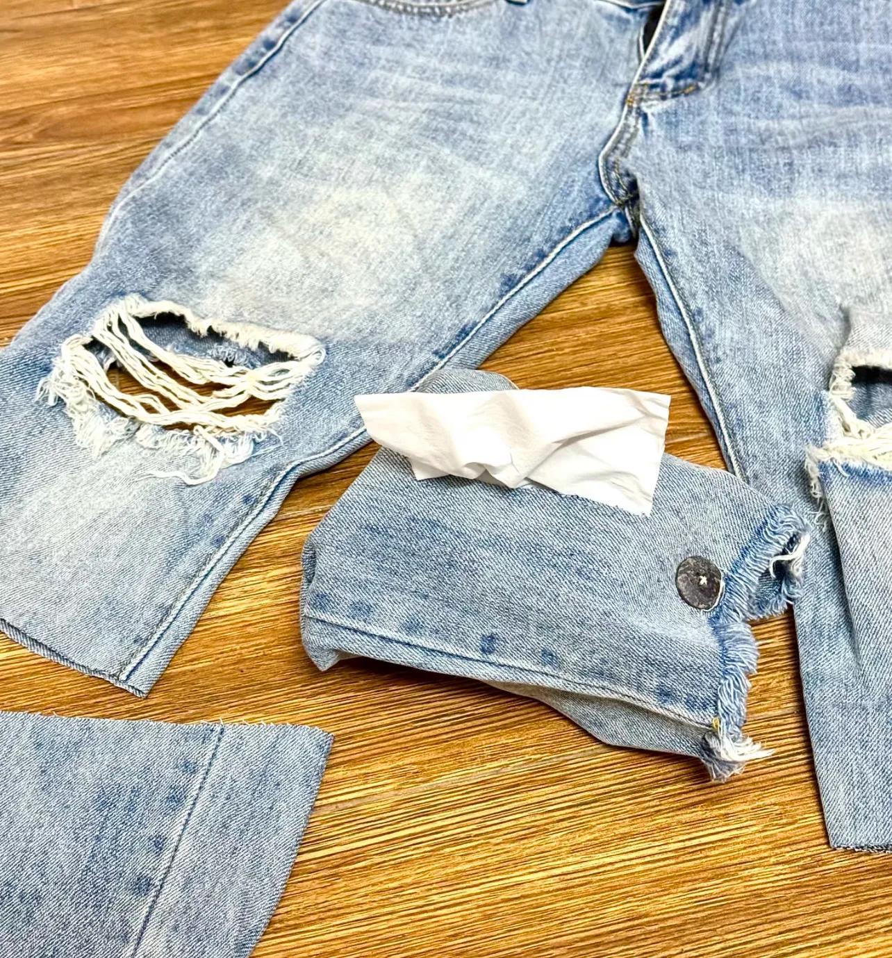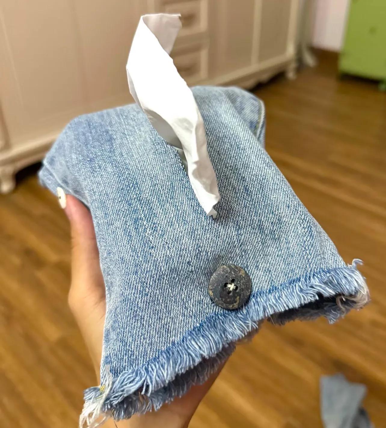 以前,我會覺得用牛仔褲做抽紙盒醜,所以寧願花十幾塊買個類似軟性抽紙盒,也不會自己動手做。