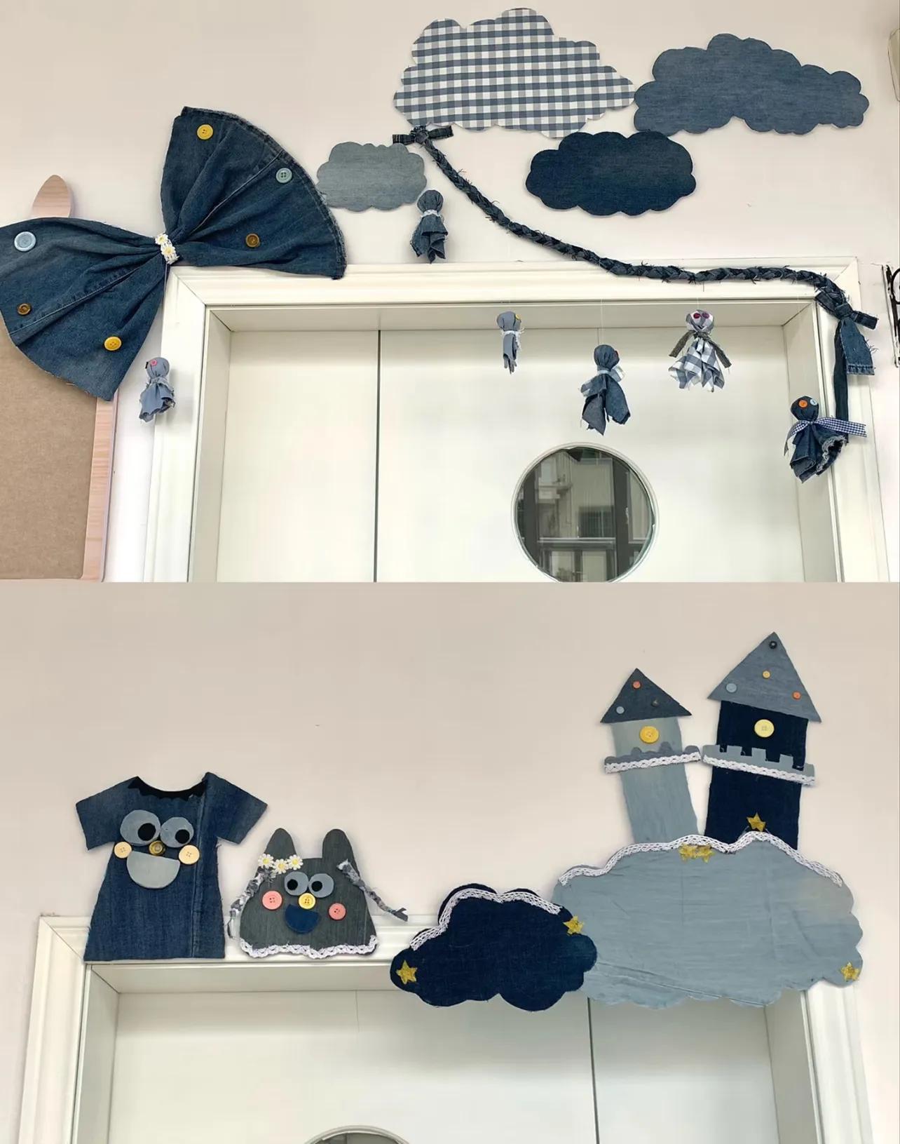 同樣是廢棄的牛仔衣,通過她的心靈手巧,讓寶寶的房間有了獨特且母愛濃度很高的裝飾。