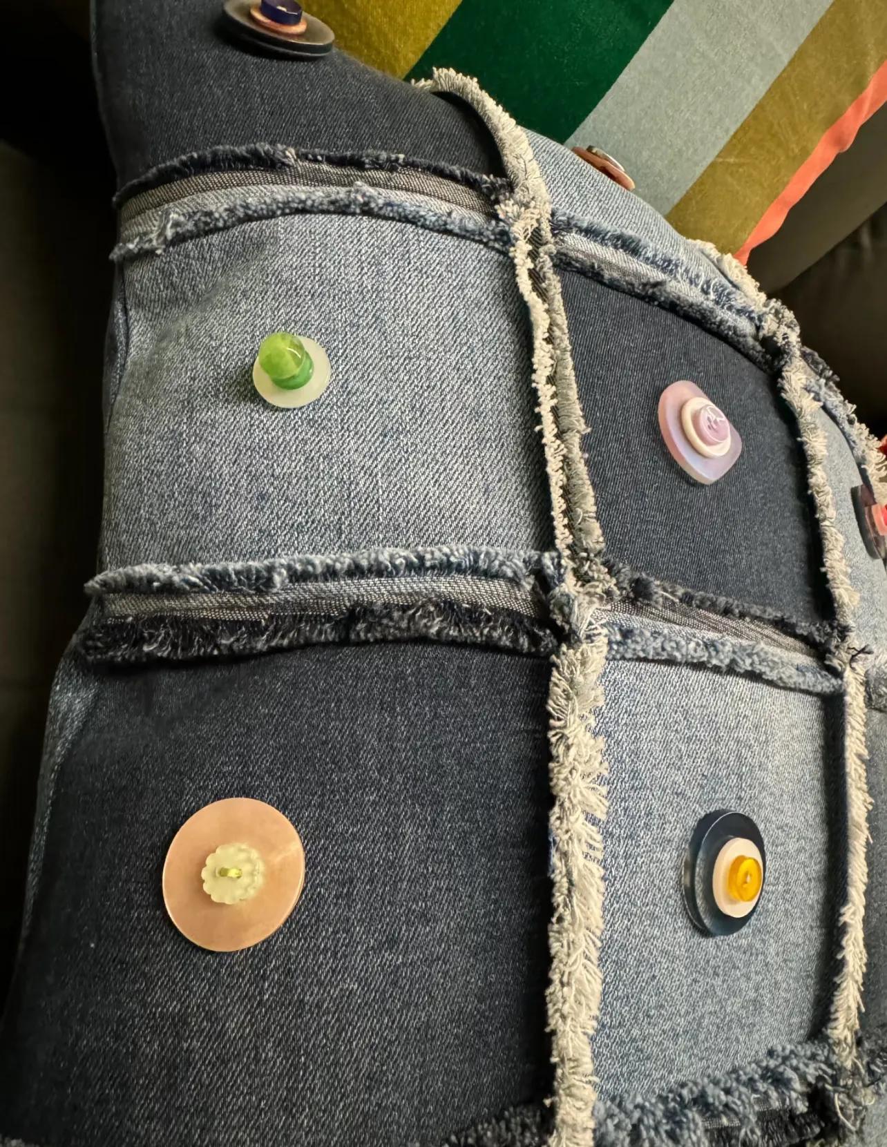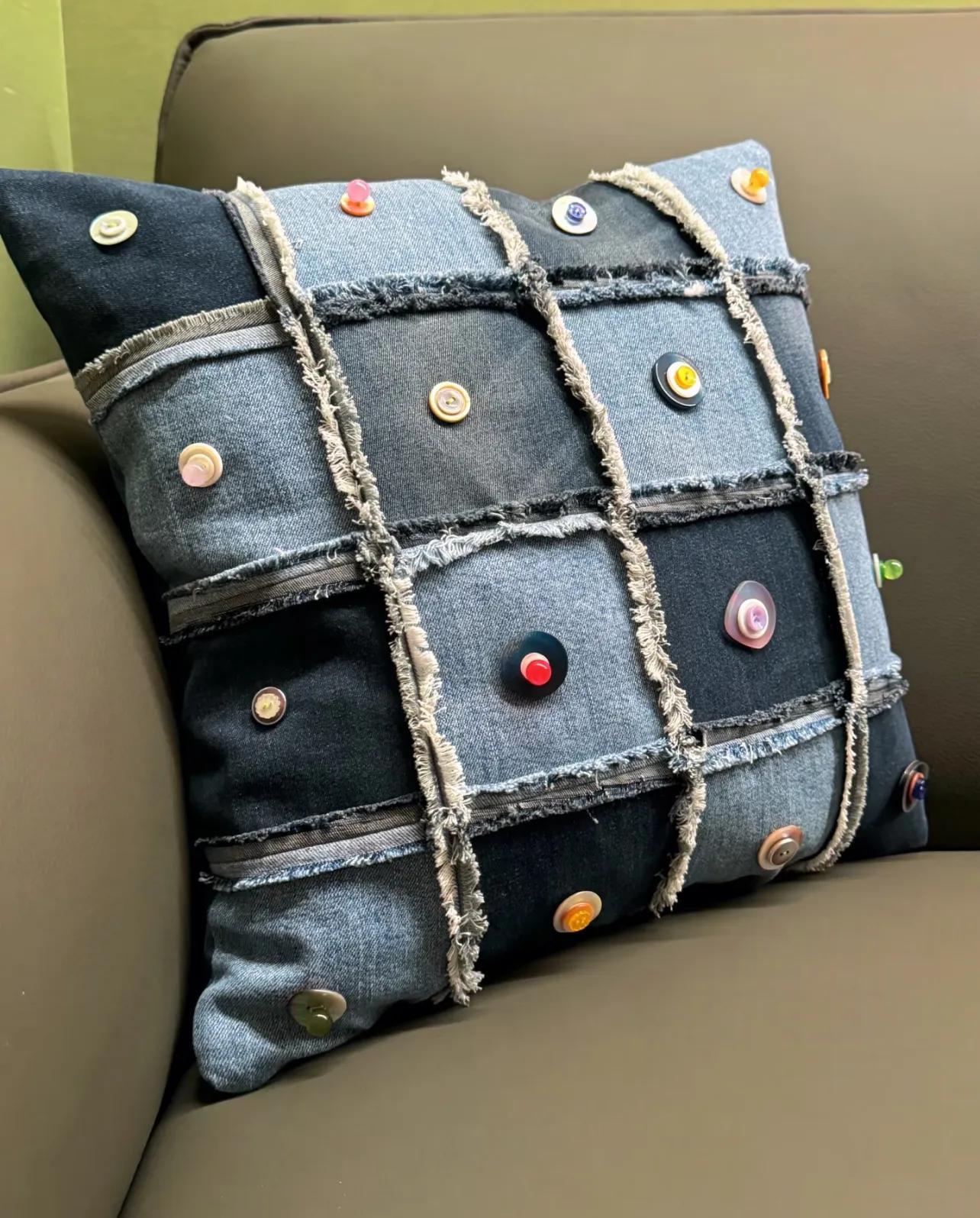所以,用廢棄的牛仔衣做靠墊,也是非常不錯的一個想法,沒有靠墊的剛好就不用買了,有靠墊但用髒了、禿嚕皮的趁此機會也能做一個新的替換上。