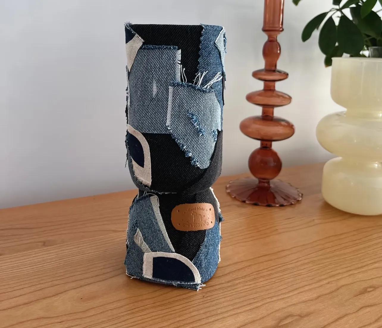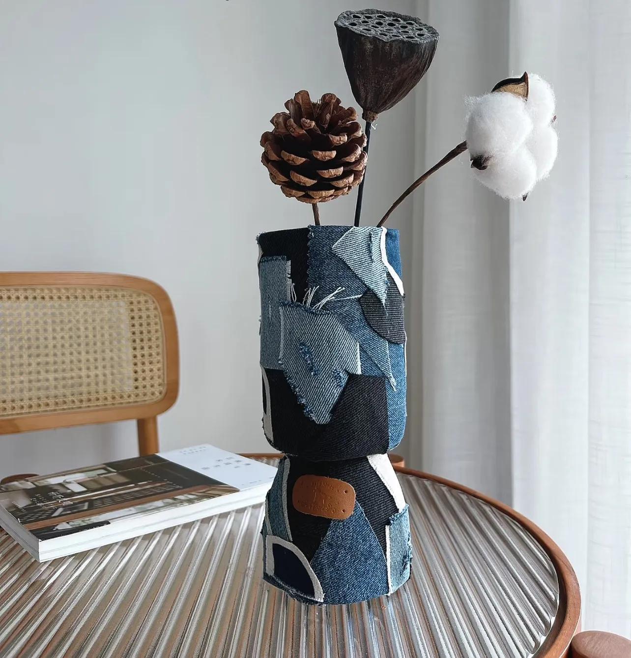 單是牛仔布,當然實現不了了,但配上瓶子之後,一個牛仔風格的花瓶,這不就手到擒來了!