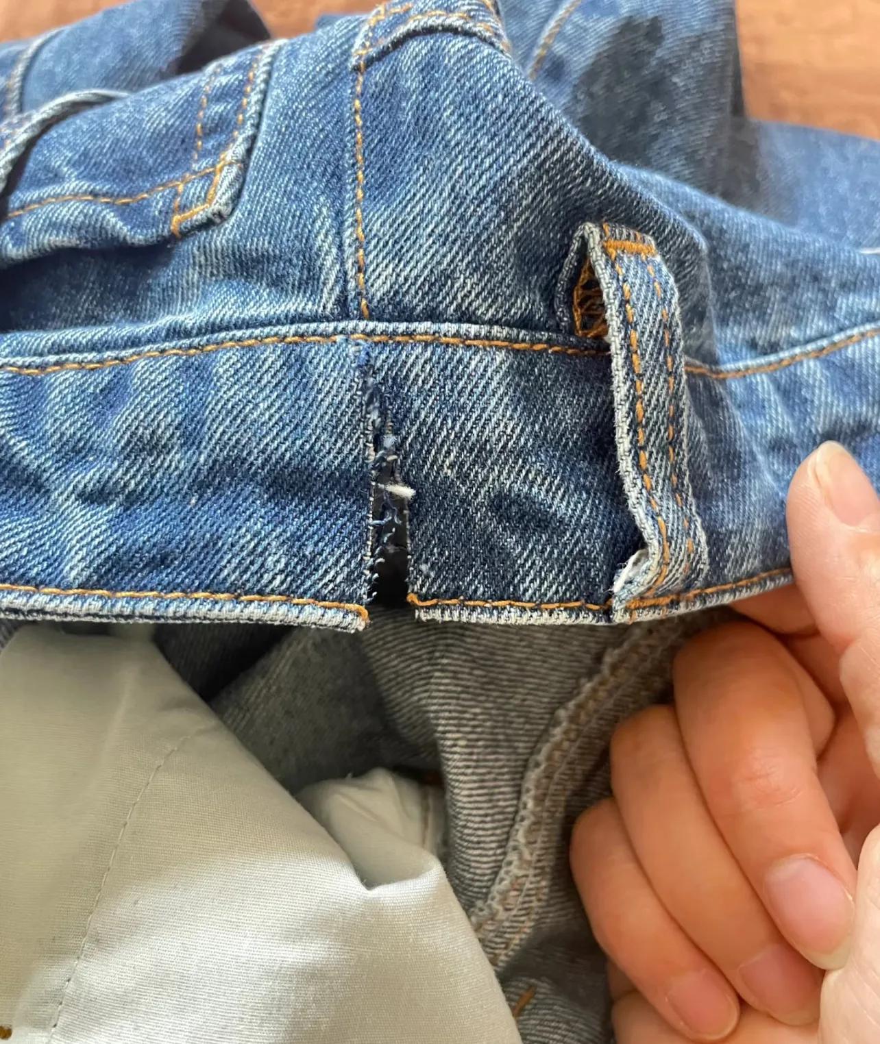 至於剪開的毛邊,本身牛仔布就屬於不容易脫線的布料,所以不想處理了完全可以不處理,想處理的話,就用針線稍微收收邊,剛好當是裝飾了。