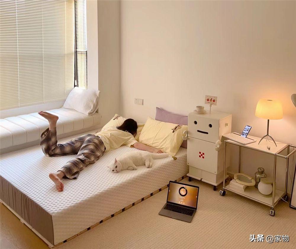 臥室不買牀反而直接放牀墊,是現在很多年輕人都在做的,直接把彈簧牀墊放在臥室裏,不僅省心省事兒,同時也便於移動,真的讓臥室用起來靈活自由很多。