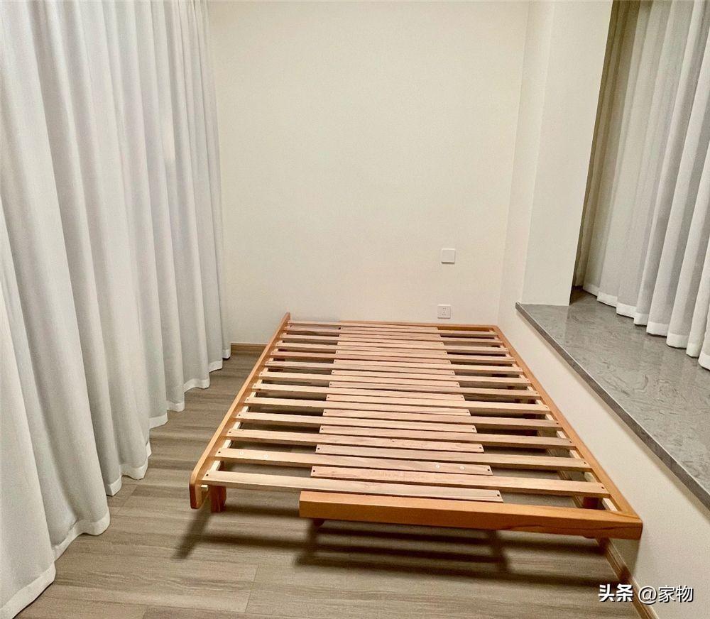 如果是南方潮氣較重的地方,不能像上面一樣直接放牀墊,其實也可以在牀墊下面加上一個簡易的排骨架,抬升一定高度,且避免受潮。