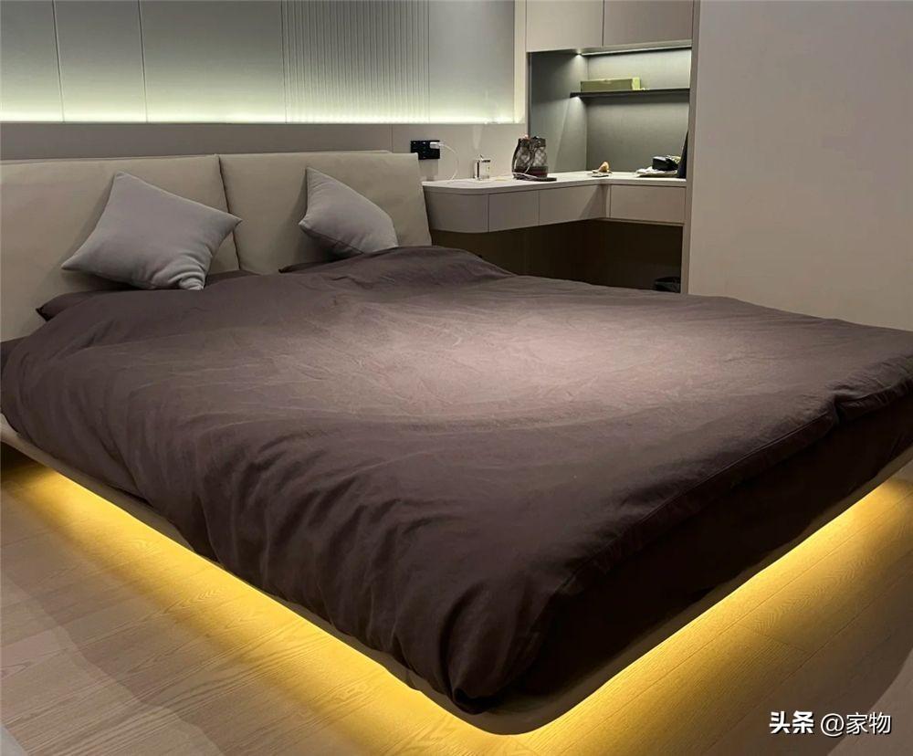 尤其是牀板下面內凹區域加上燈帶後,真的有種牀鋪懸浮飄起的感覺。