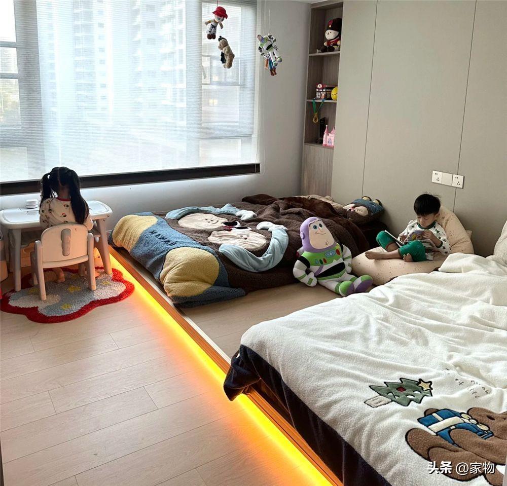 而如果兒童房做地臺牀,甚至還可以像大通鋪一樣放上兩張牀墊,供二胎家庭使用,算是現在又好看又實用又靈活的牀鋪裝修了。