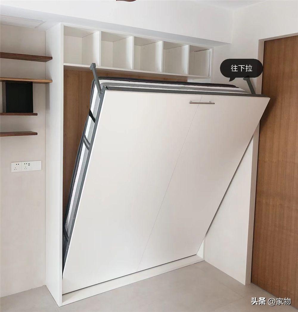 最後就是小戶型常用的“墨菲牀”了,所謂墨菲牀,其實就是將牀鋪豎向摺疊到櫃子裏的一種設計,這幾年也越來越多見了。