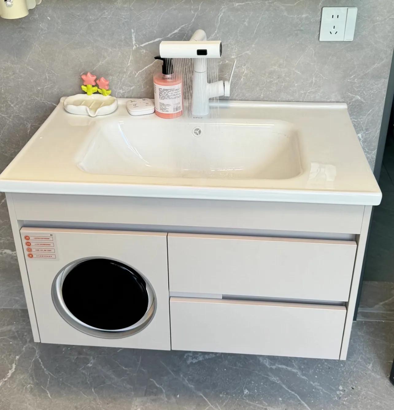 另外,除了盆,目前浴室櫃行業還有一個小小的趨勢苗頭——浴室櫃集成內衣洗衣機!