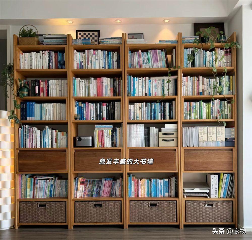如今的電視牆,早已經被改成了一面近乎通頂的書架牆。