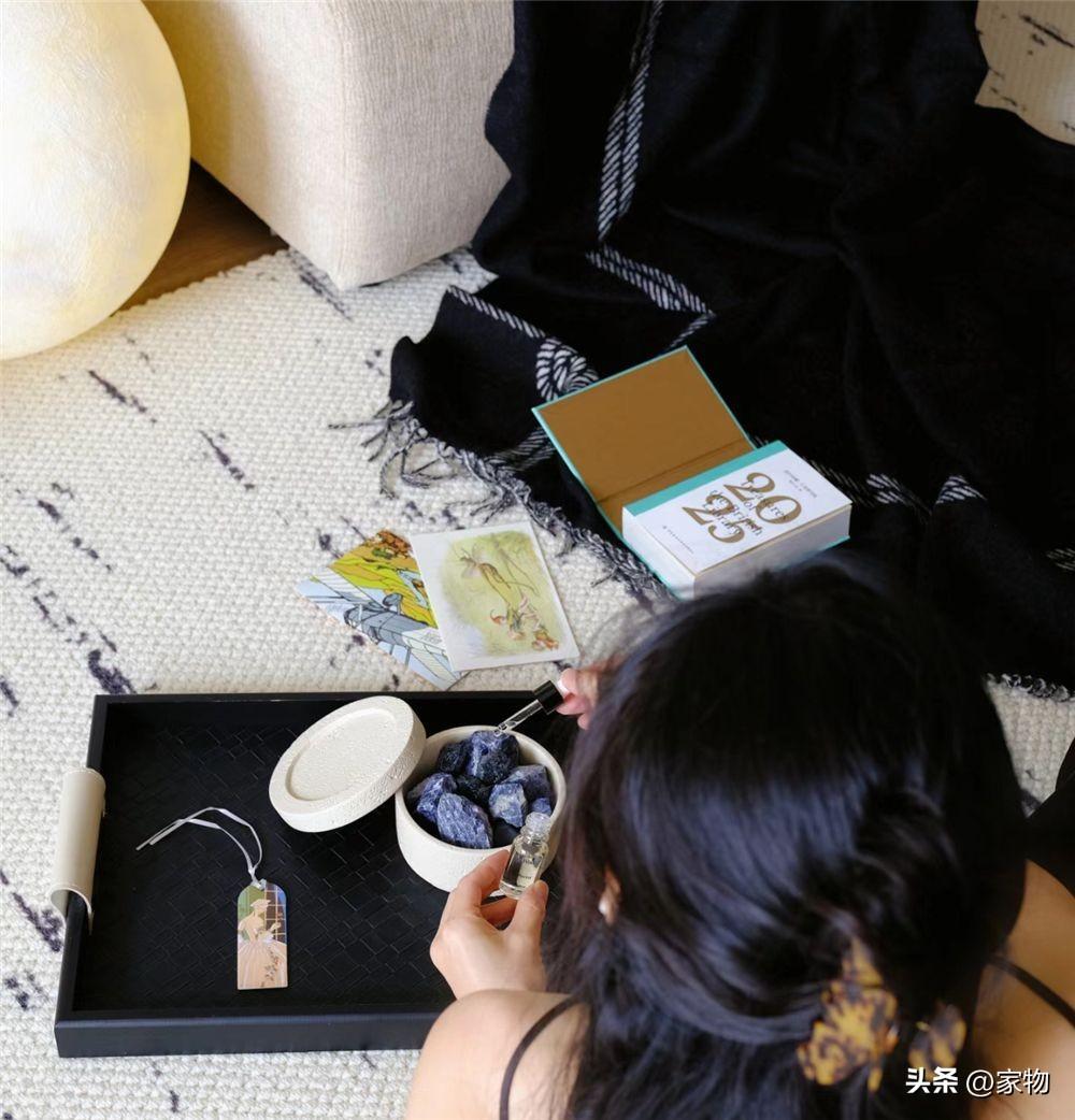 不用放茶几後,地毯也變成了一個靈活多樣的休閒區域,坐在上面看看書、玩會兒手機,用托盤裝些水果,喝喝下午茶聊聊天,也同樣有種休閒愜意的感覺,我個人還是挺喜歡這種佈置的,看似簡單,但實際上功能豐富。