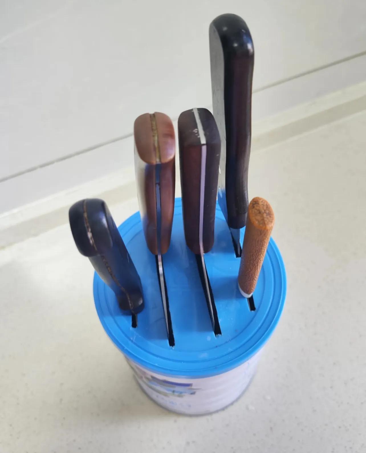 跟之前一次一樣,當家裏沒有刀具收納架,我提出要買,它操縱我爸,還給家裏DIYG過刀架。