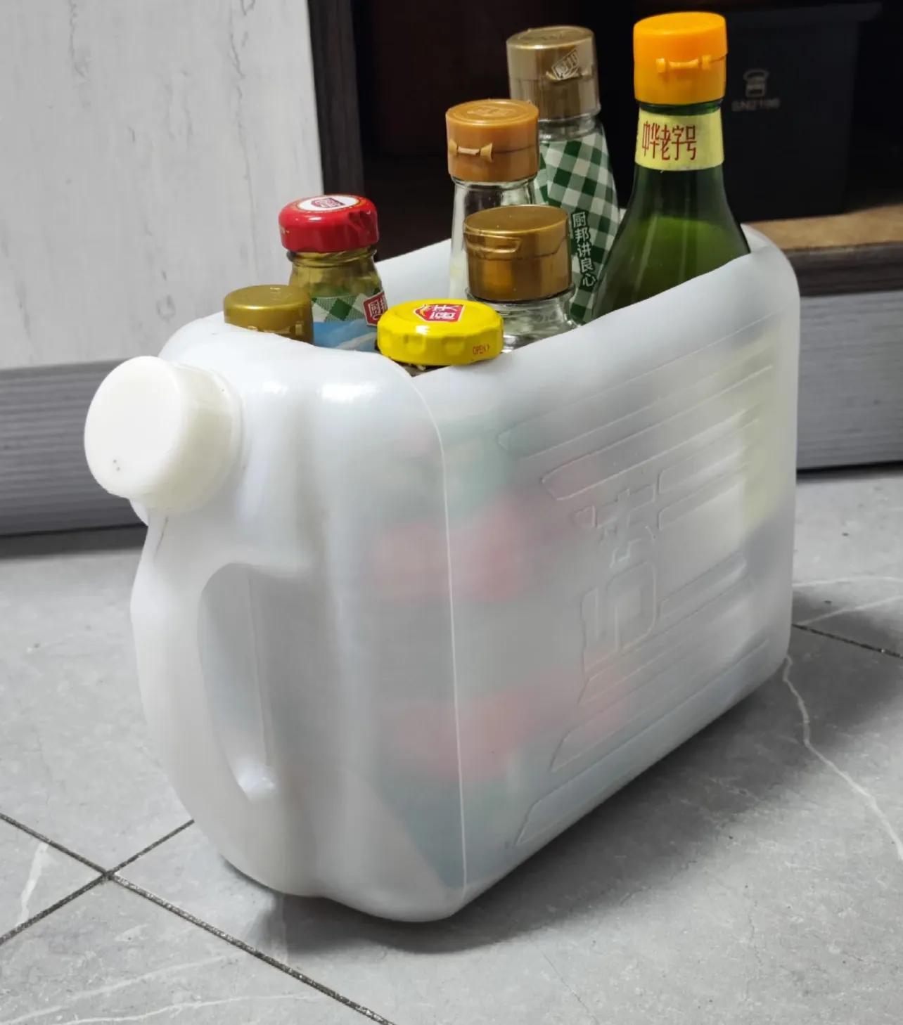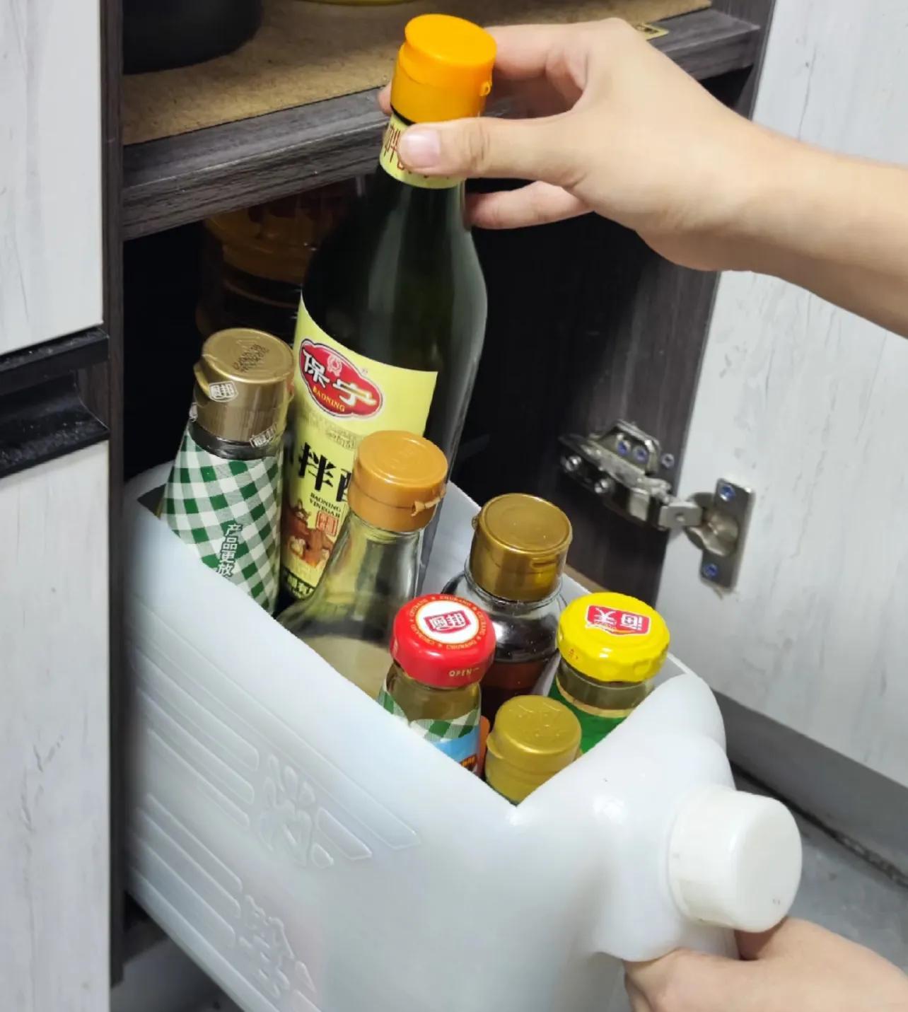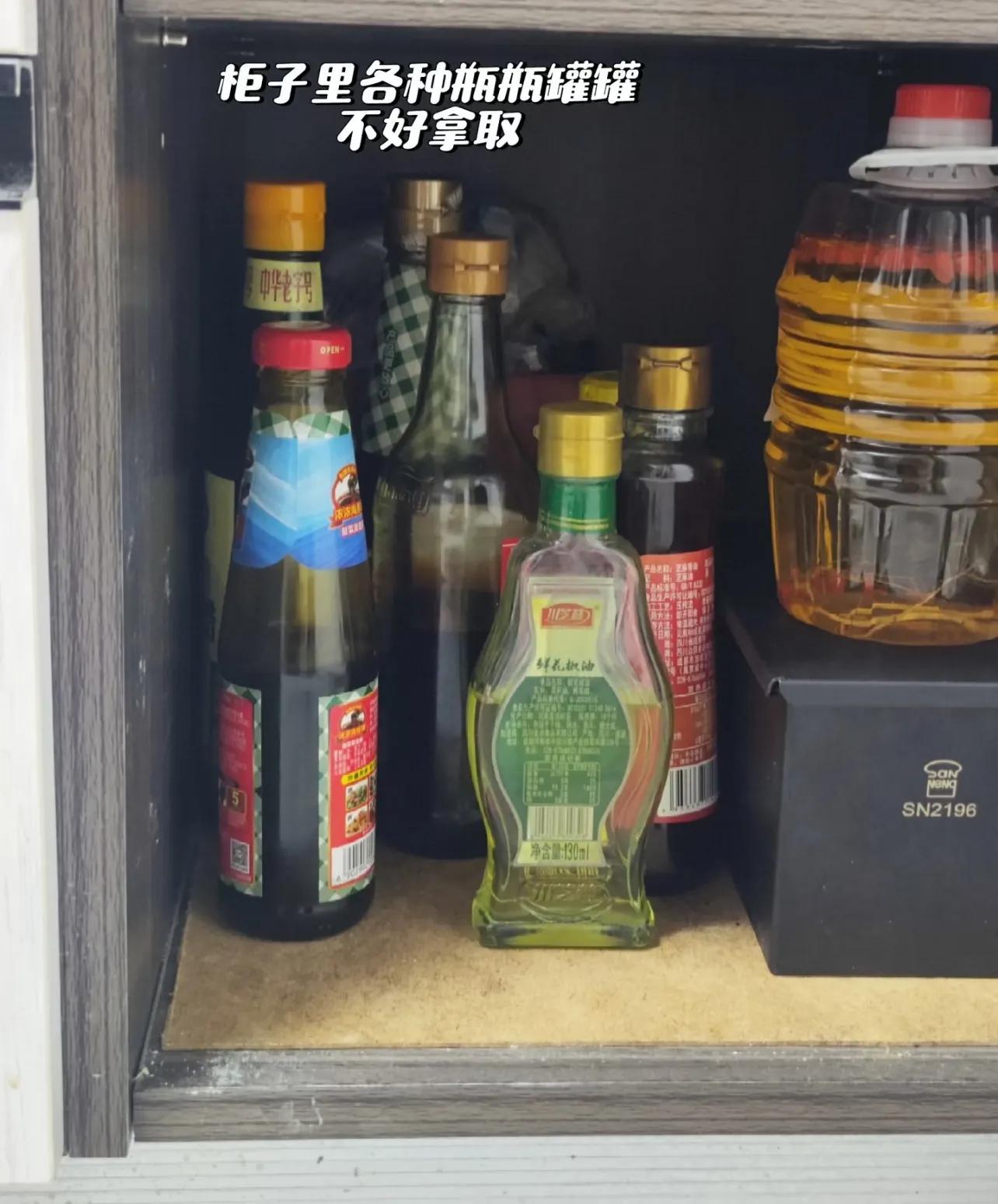 雖然看着湊合了點,但它居然還是個帶把手的抽拉式,會讓調料拿取方便很多,還會讓櫥櫃裏看起來也整潔很多。