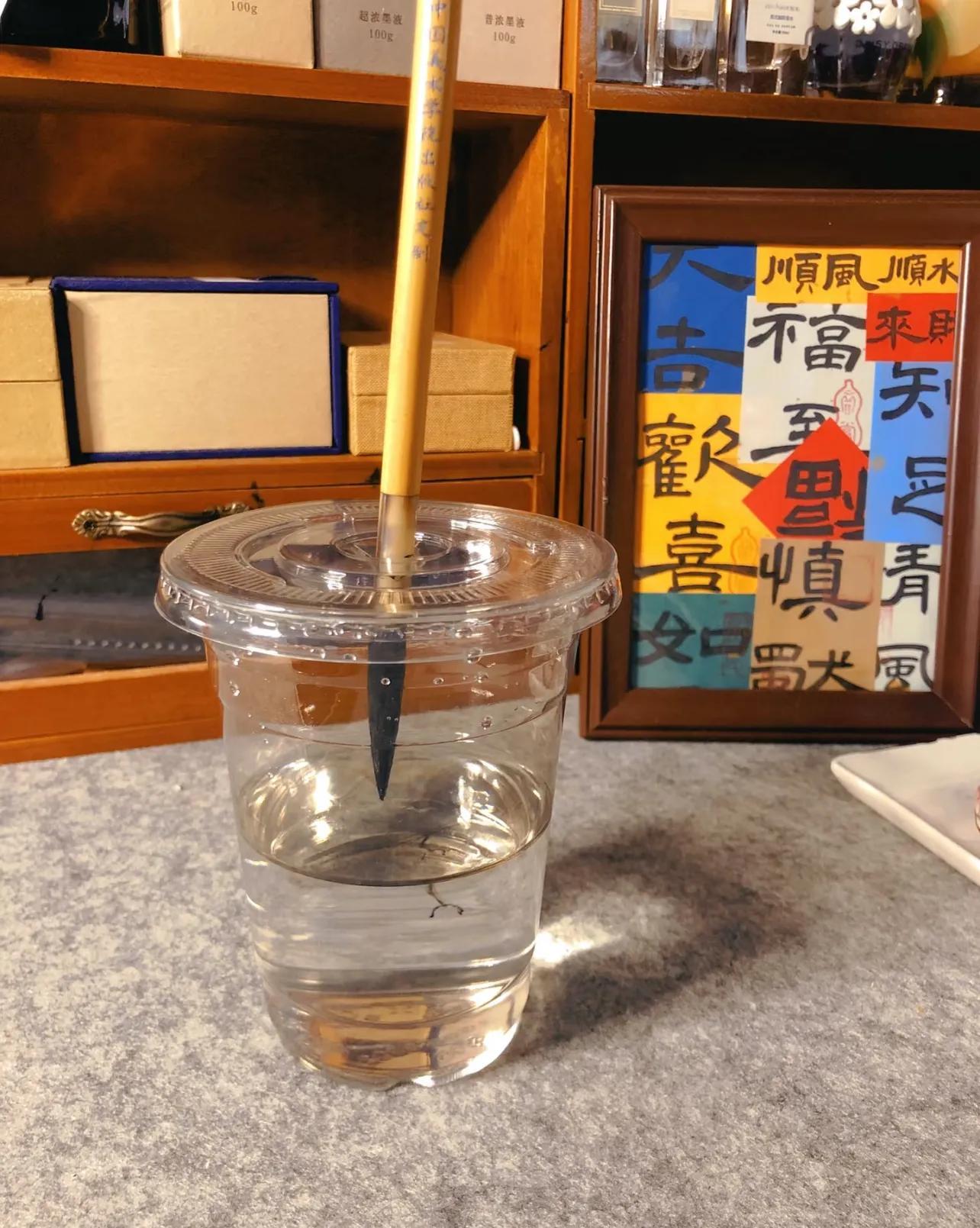 這麼幹,一來是有個臨時放筆的地方,二來是筆放在水上面,保持較大的溼度,一天都幹不了,想用的時候,可以直接拿起來用,正好解決了我每次懶得洗筆,會幹的痛點。