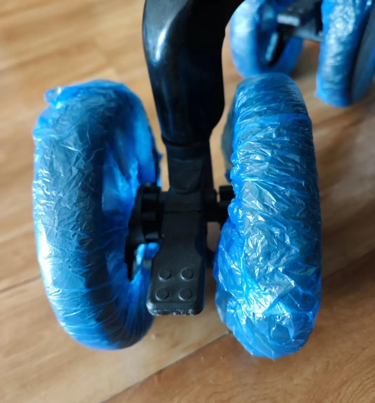 之後,她每次出去都把車軲轆用浴帽保鮮袋套上,回家在門口脫掉,丟進垃圾桶。