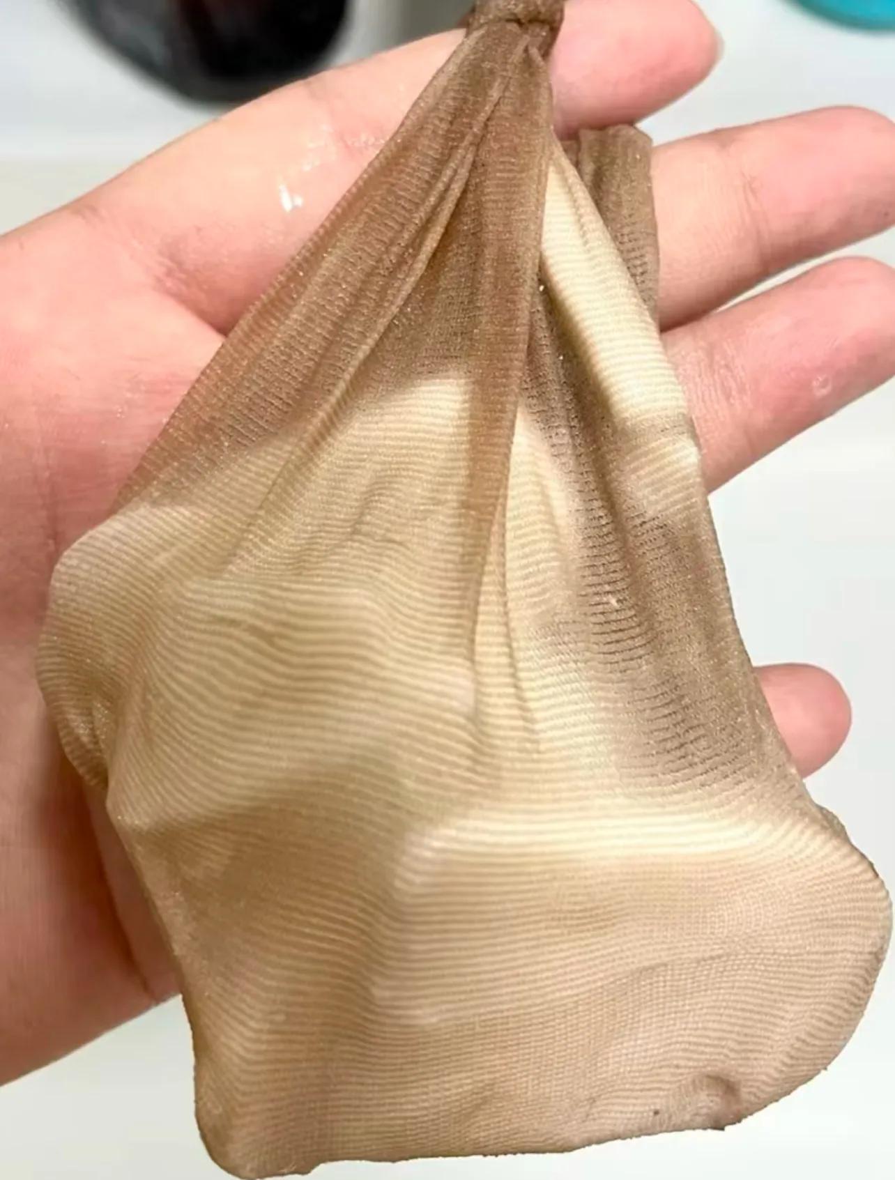 說到絲襪,就不得不提到,我家絲襪的另外一個用途——用來收納小塊肥皂!