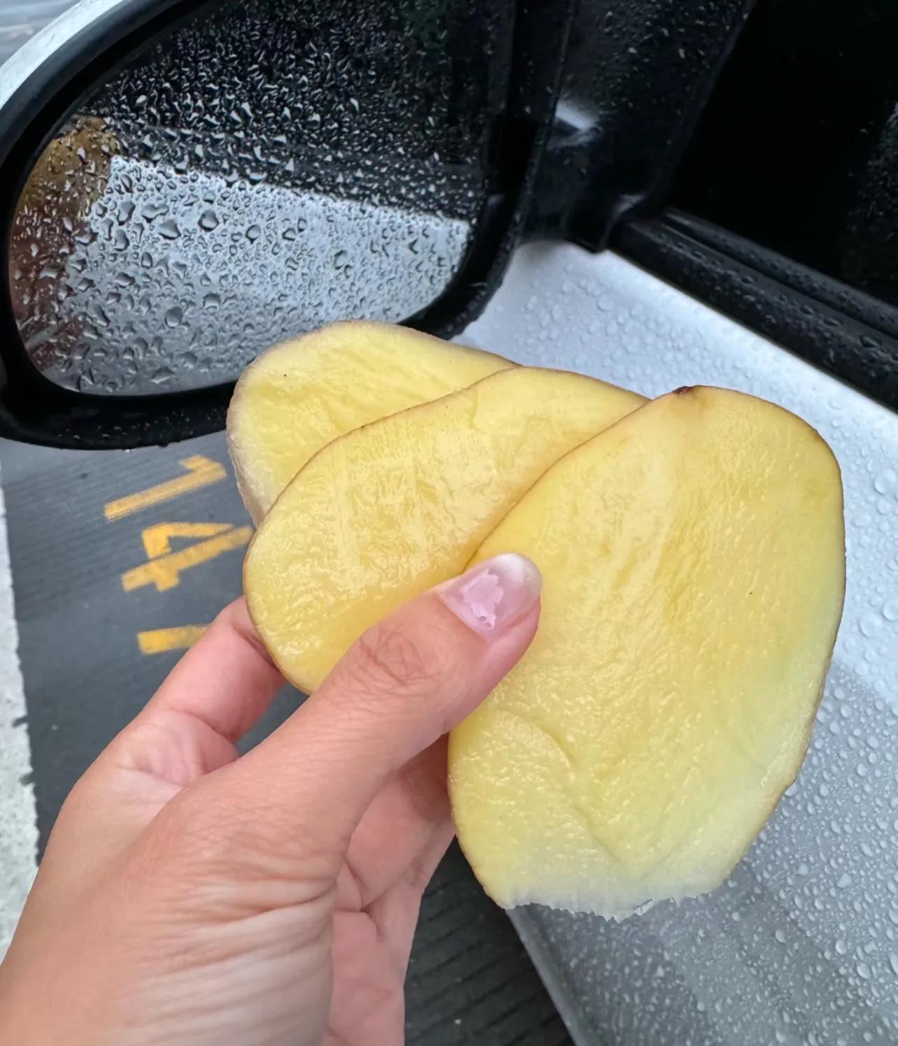其實噴霧根本沒必要用,以後你下雨可以試着帶兩片土豆出來,往玻璃、後視鏡上一抹,肯定好用。