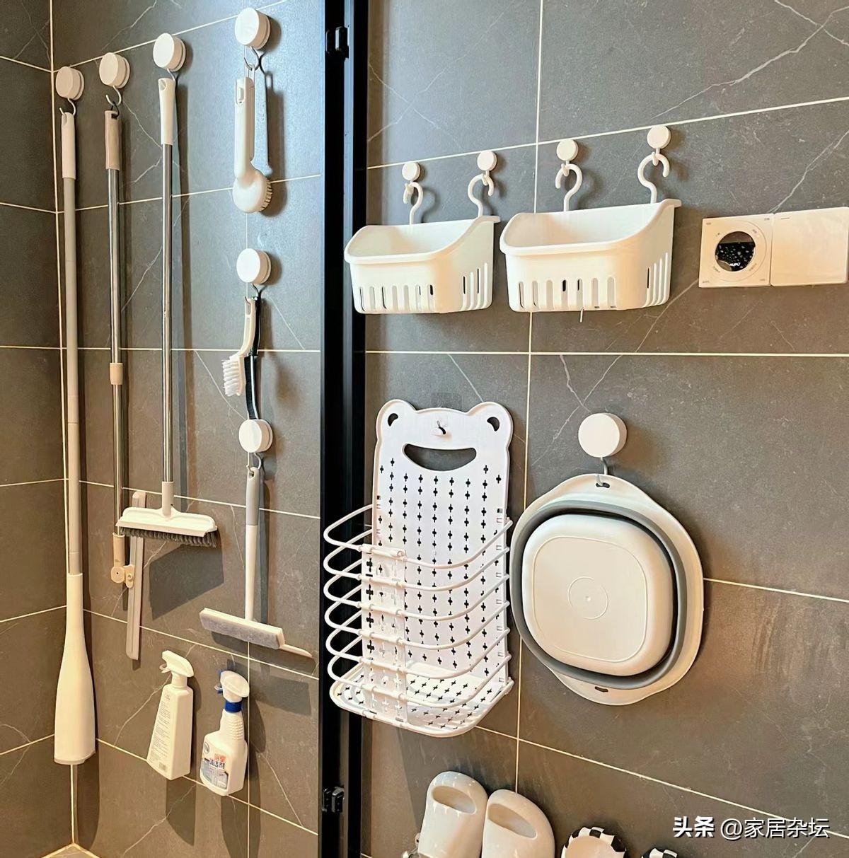而衛生間內所有的工具拖布,刷子等,都是隱藏在門後的掛鉤上面。