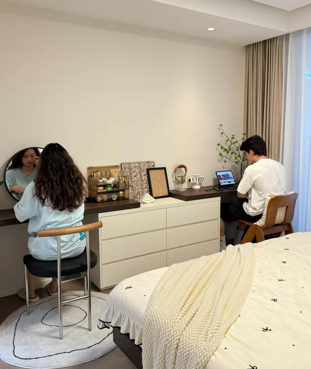 可,我觀察到的現實情況卻是:很多家庭的化妝桌都在喫灰,利用率並不高。反而,是一些沒有化妝桌束縛的臥室,會因爲空間的釋放,其他佈置的落地,變得更寶藏一些。