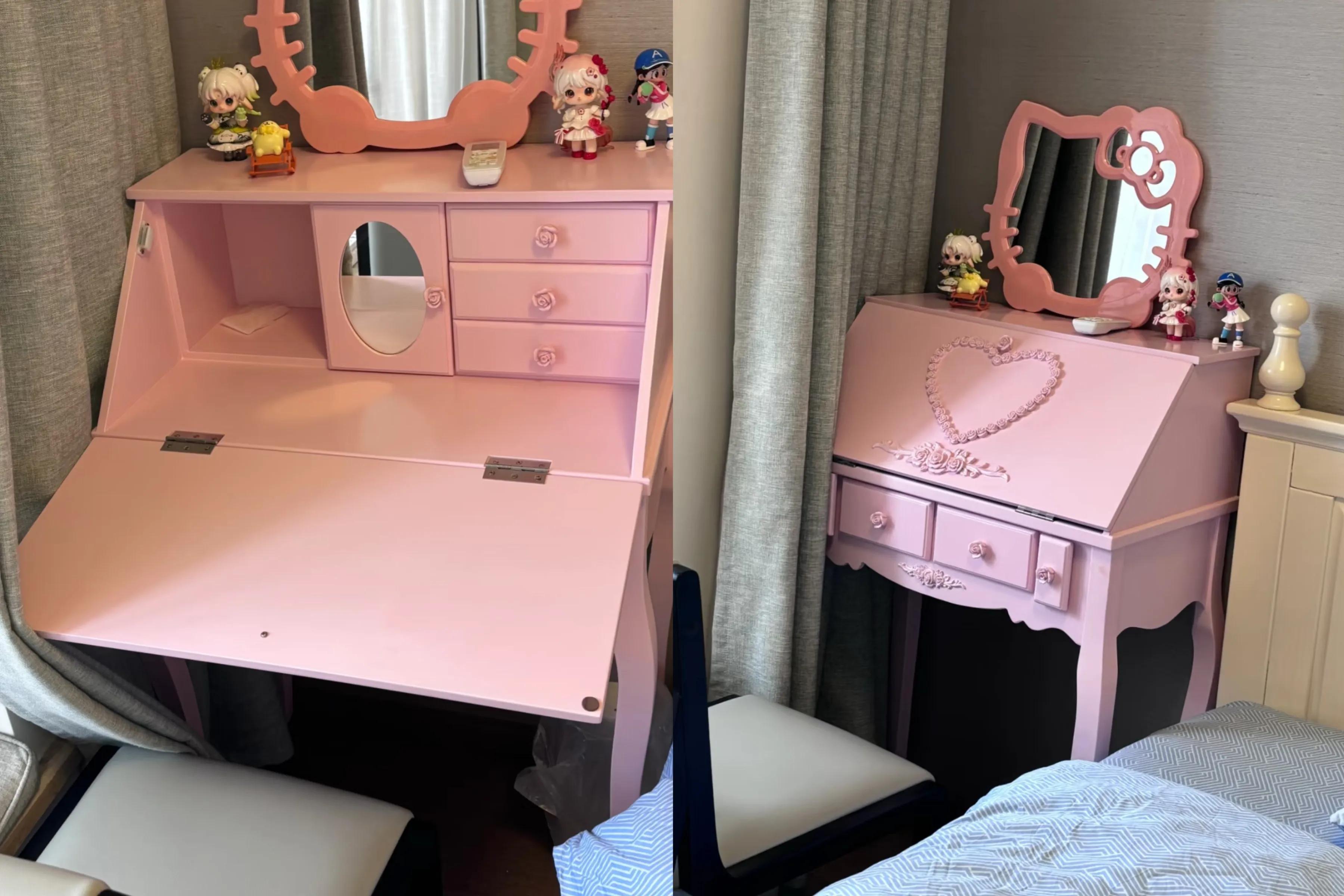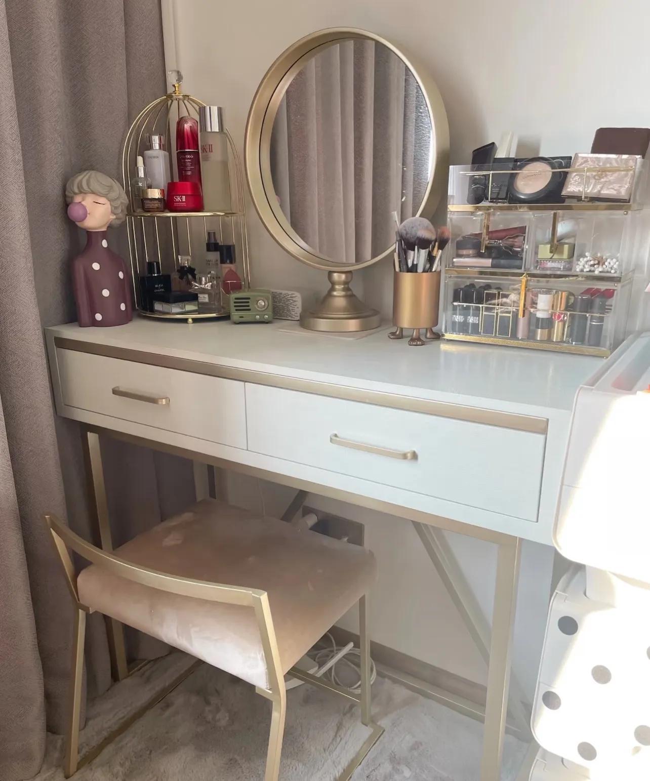 像這種復古造型感拉滿餓可愛化妝桌,它就是存在只能化妝,別的什麼都幹不了的窘境;
