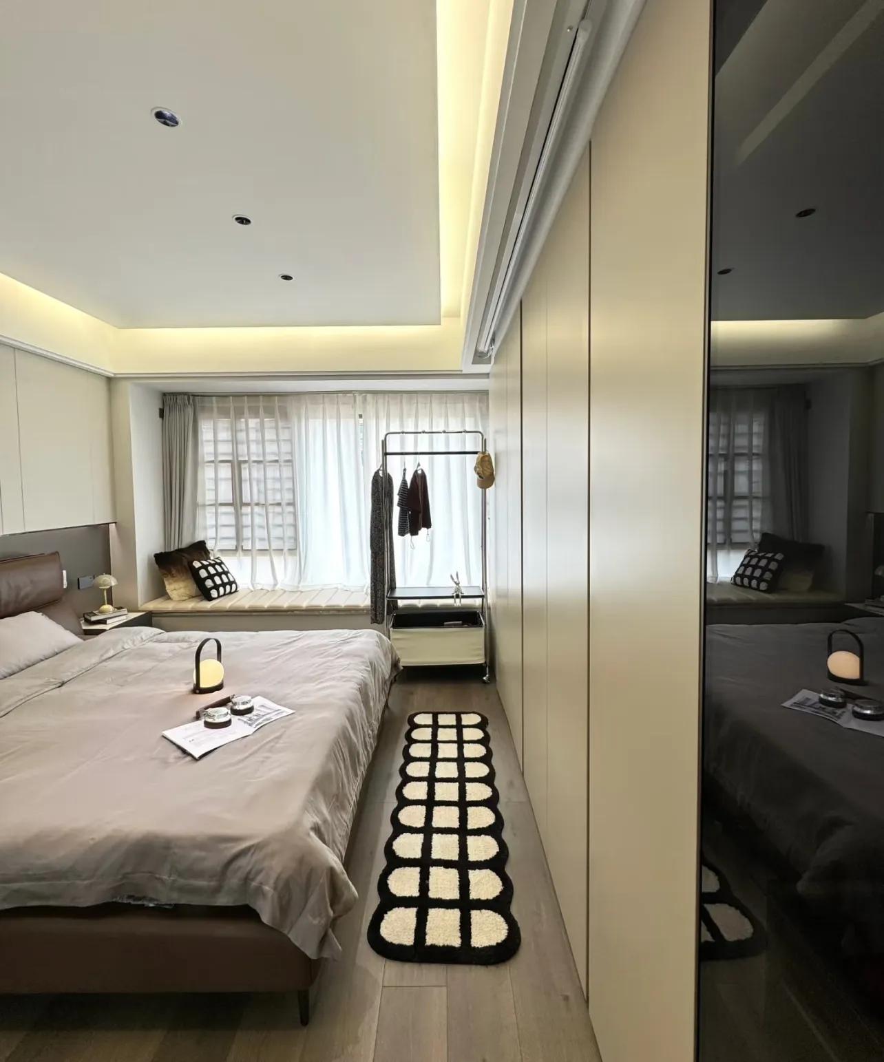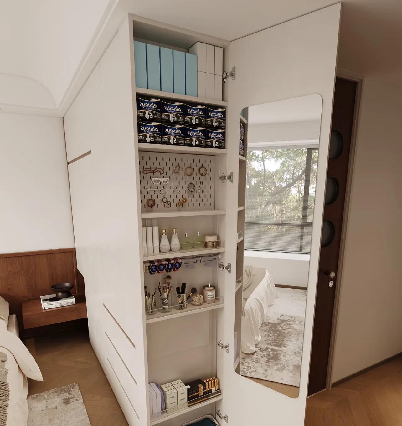 極其節省空間的同時,還給臥室增加了一面全身的穿衣鏡。