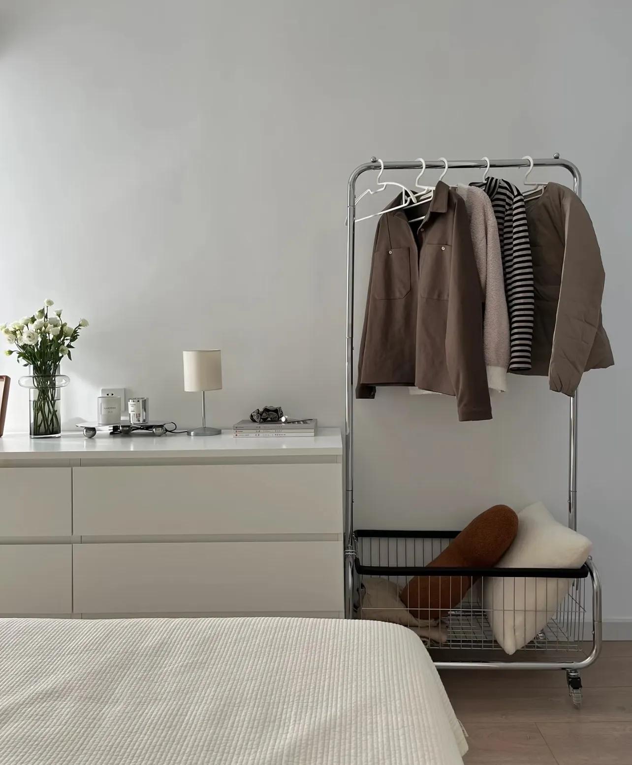 雖然,拿取方便,卻也有落灰、雜亂的缺點,增加家務量、降低臥室整潔度。