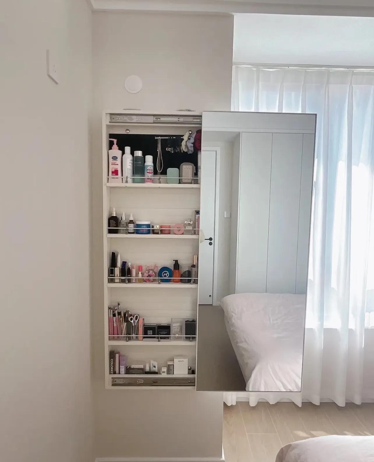 收納容量也不低,也能打開鏡櫃,化妝品一目瞭然。