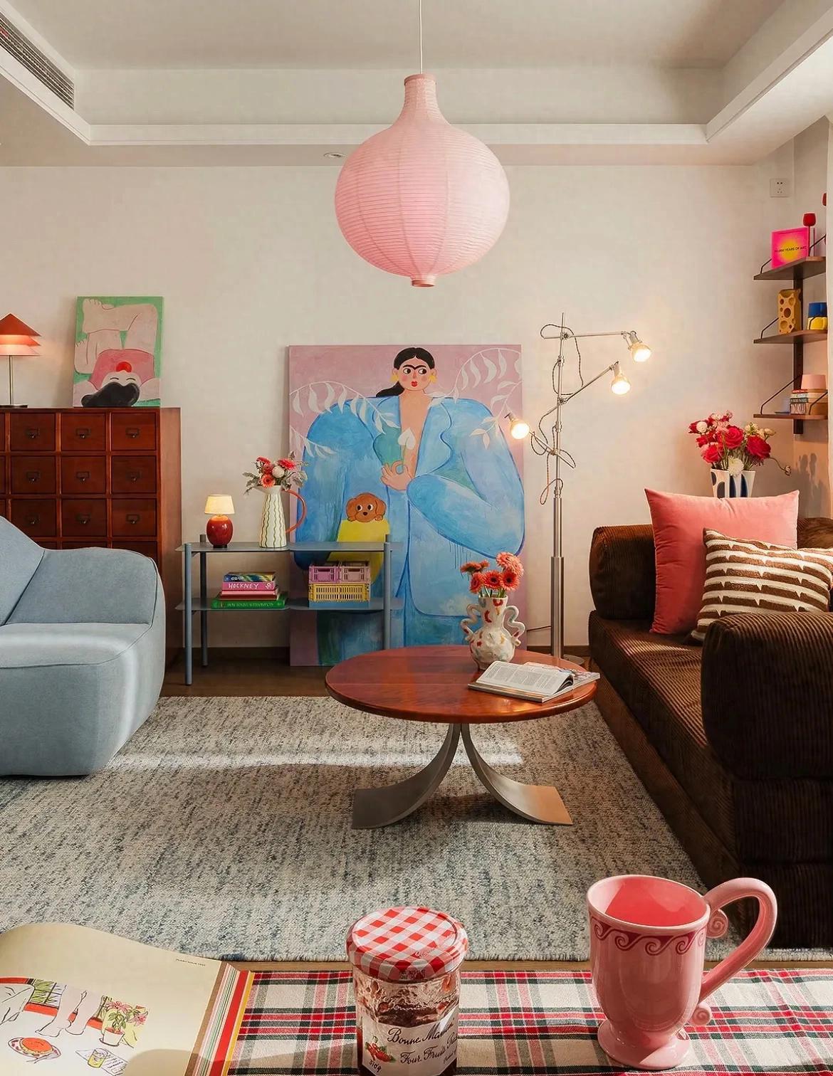 一般拿不準的家庭,可以先從大的裝飾品入手,比如彩色落地燈、小邊幾,增加色彩的這一部分搬進來不僅可以成爲空間焦點,而且可以分散凌亂的注意力。