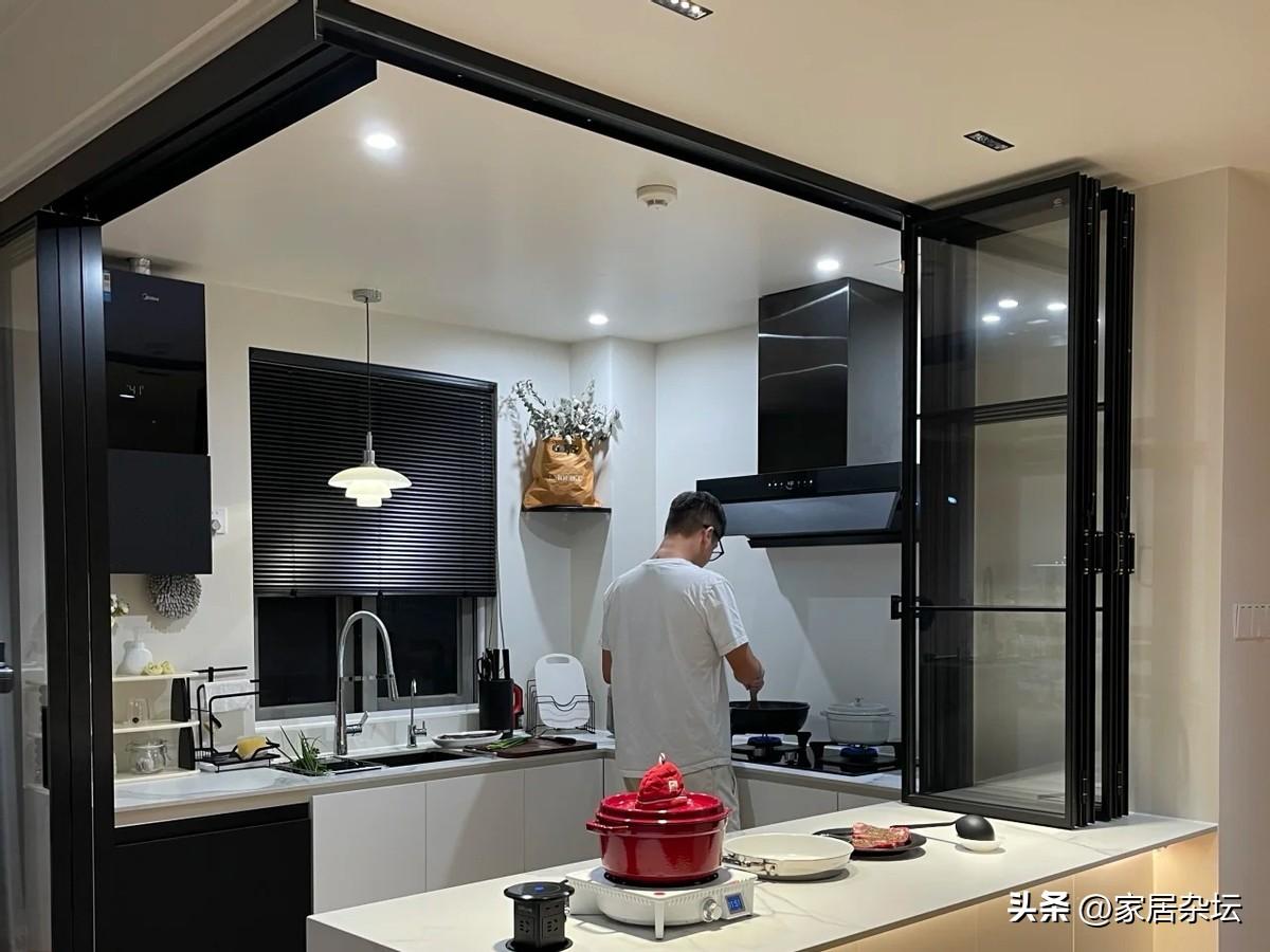 這種敞開封閉式廚房,解決了傳統封閉廚房的暗黑,又解決了敞開式廚房的無法通天然氣。