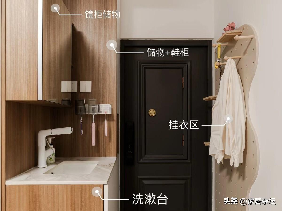 ②、洗漱臺外移。我們可以將洗臉盆,移至衛生間門口,或者是移至陽臺,還可以是玄關,具體根據我們家裏的佈局選擇就可以。