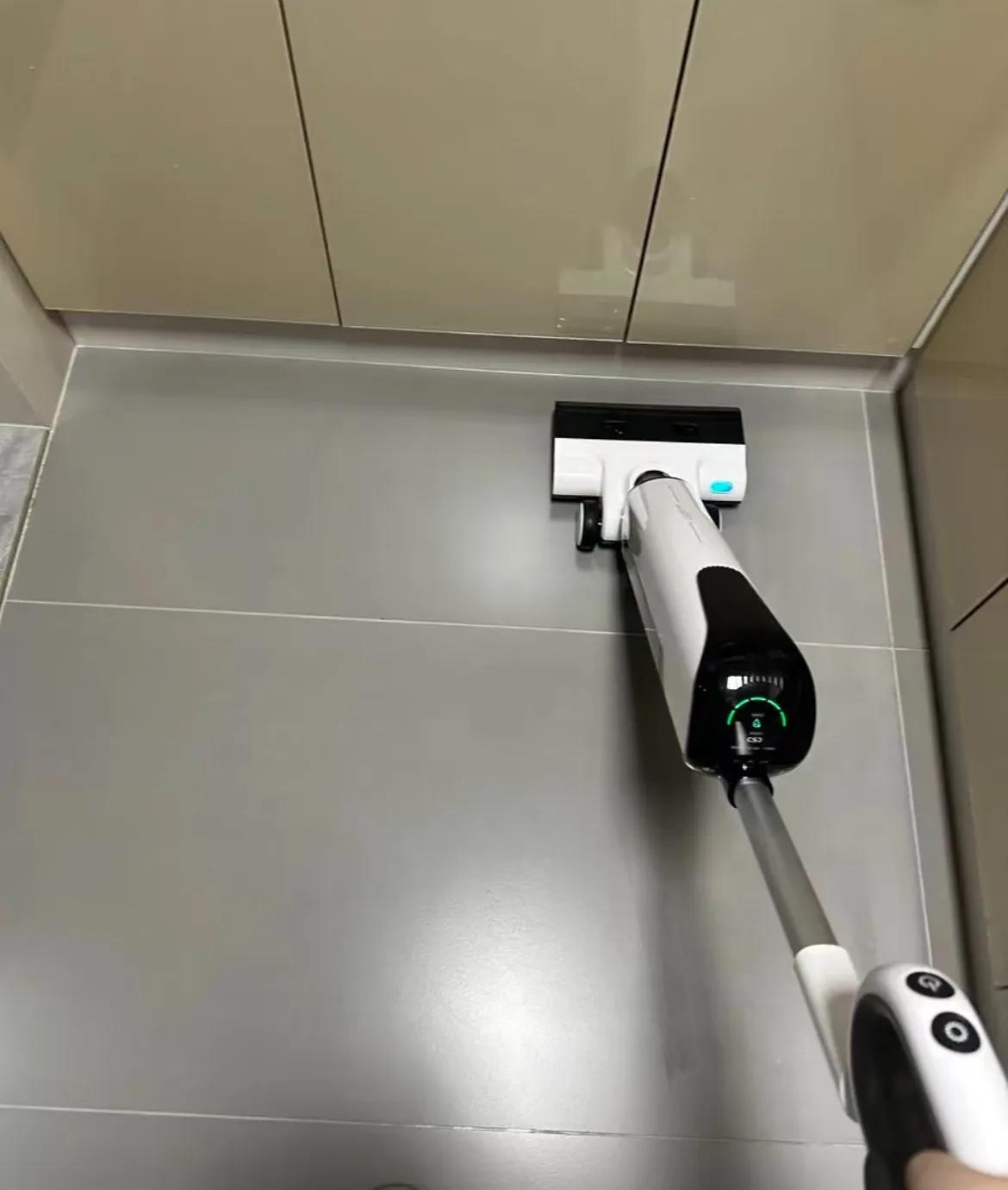 尤其是衛生間、廚房這種有頑固污漬,又都會是瓷磚的牆面,用抹布費勁吧啦,不如拿洗地機上牆,去感受一把清潔的快樂。