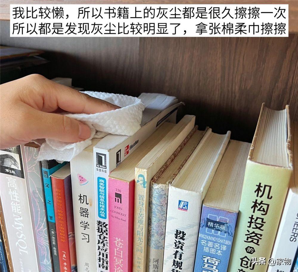 - 書架書本上面的灰塵,用乾洗臉巾擦拭不留痕跡。