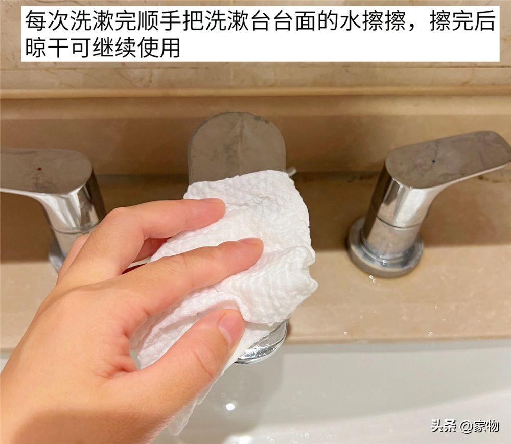 有時候,我用洗臉巾擦完臉後,也會直接用它去清潔洗手池的檯面,上面水漬污垢順手一擦,衛生間的洗手檯也能時刻保持乾淨清爽,怎麼也比之前用抹布的時候省心。