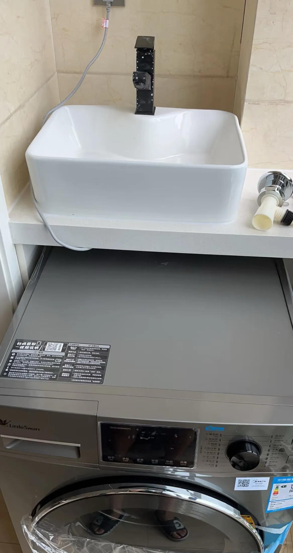 講真,洗衣機上面不建議做洗手盆,就算是你注意到洗衣機的尺寸了,也會因爲太高,而不好用!