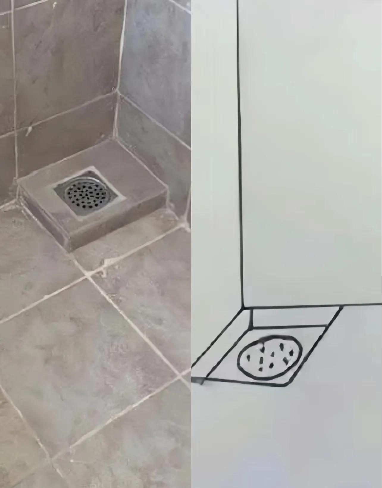 這個業主很講究,講究個事無鉅細,在留地漏的時候,也不例外,還給瓦工畫了一個草圖,示意地漏要下凹。