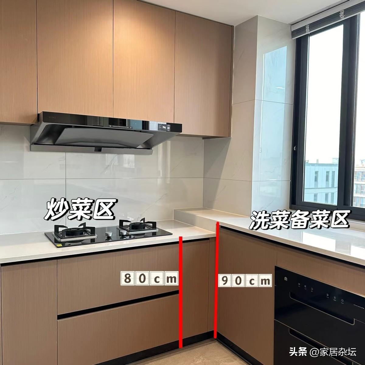 ②、水槽旁邊留一格。水槽下面我們是沒法留格的,在側邊可以留一格,以後放垃圾桶、小推車,是非常好用的。