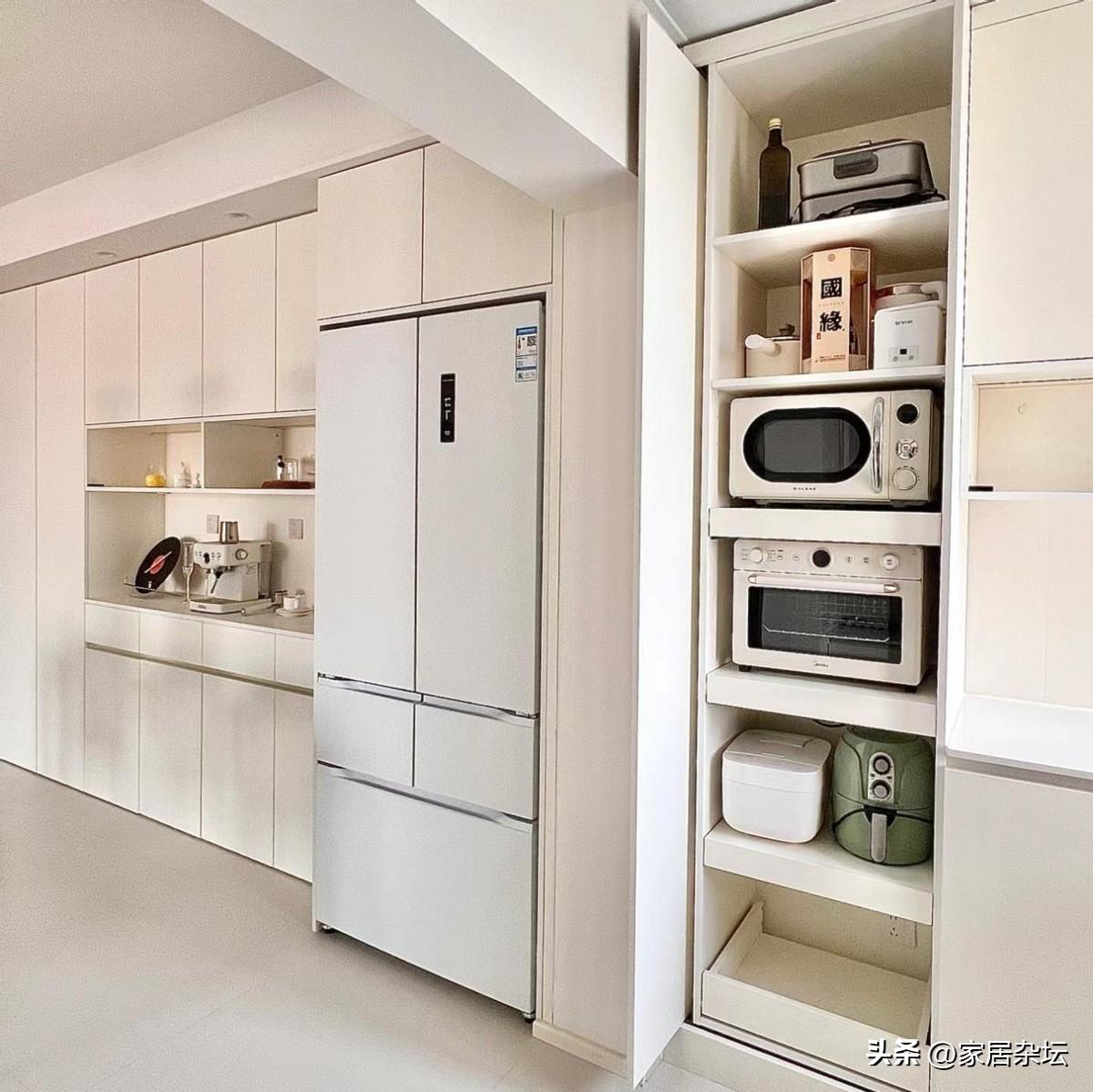 所以,廚房第二個公認的好的裝修,是可以實現電器的嵌入式收納。既不影響使用,而且讓我們廚房乾淨整潔。