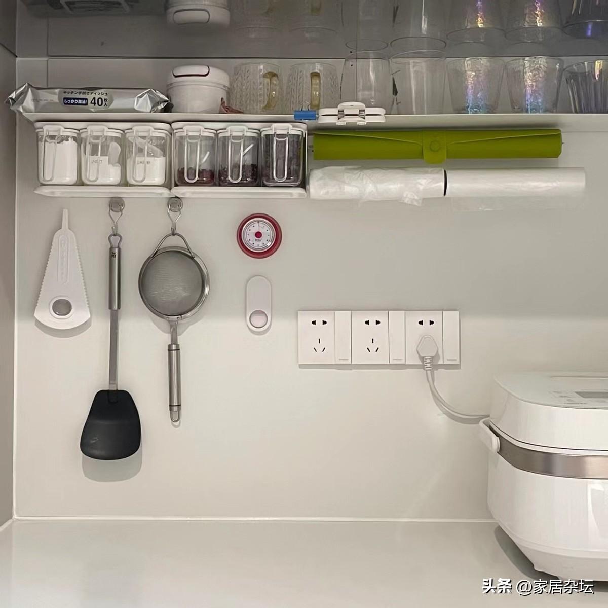 這種做法,就讓我們的廚房保持乾淨整潔。因爲檯面上就不用再放這些電器了,而且使用起來是很方便的。因爲都是單獨收納,用哪個,很方便就找到。