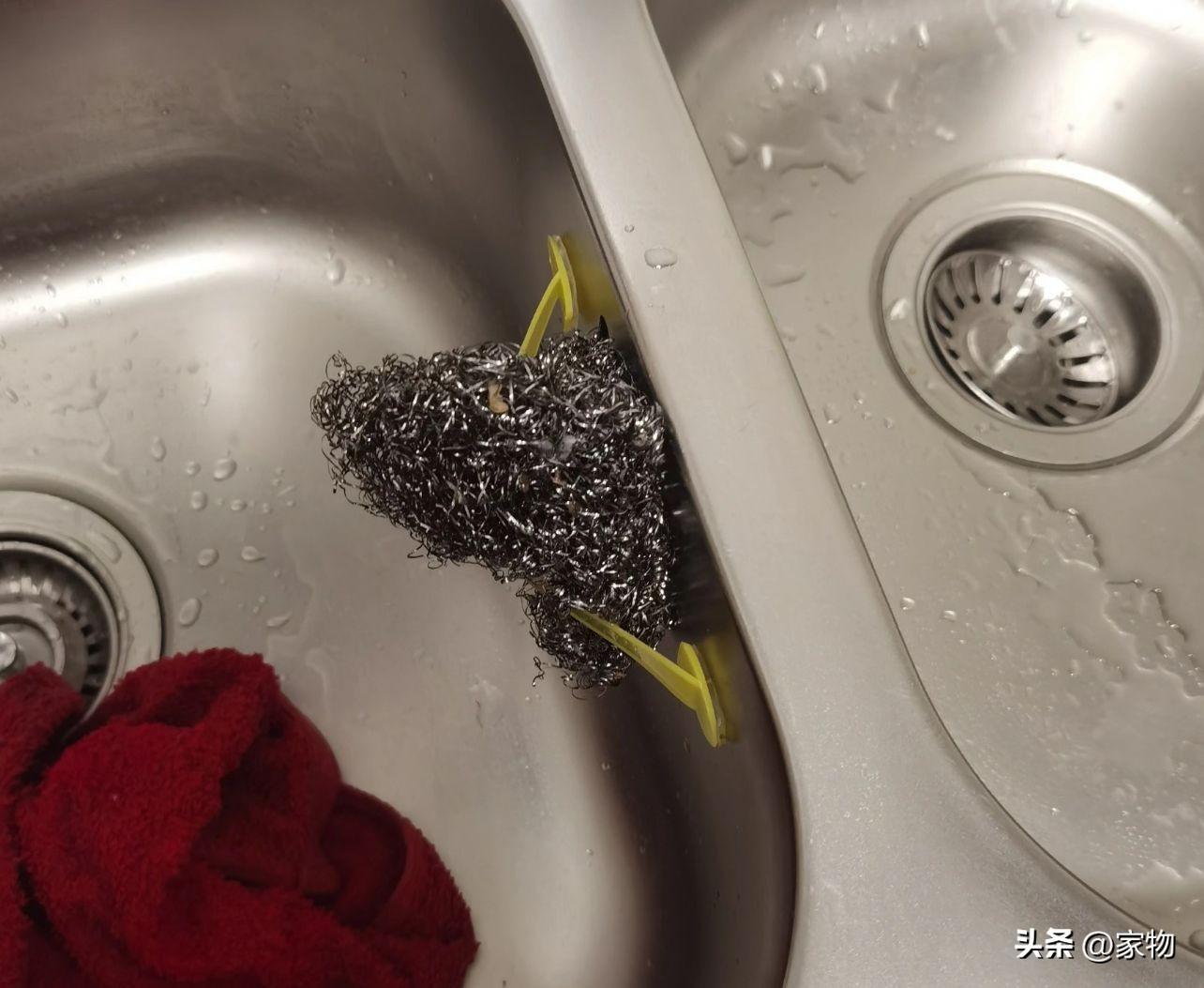 用相似的方法,將牛奶箱的提手貼到水槽內壁,它也就變成了一個洗碗布的額瀝水架,用完後的鋼絲球、洗碗布都可以塞到裏面,既收納又瀝水,用髒了後還能隨時換新,省錢又實用。