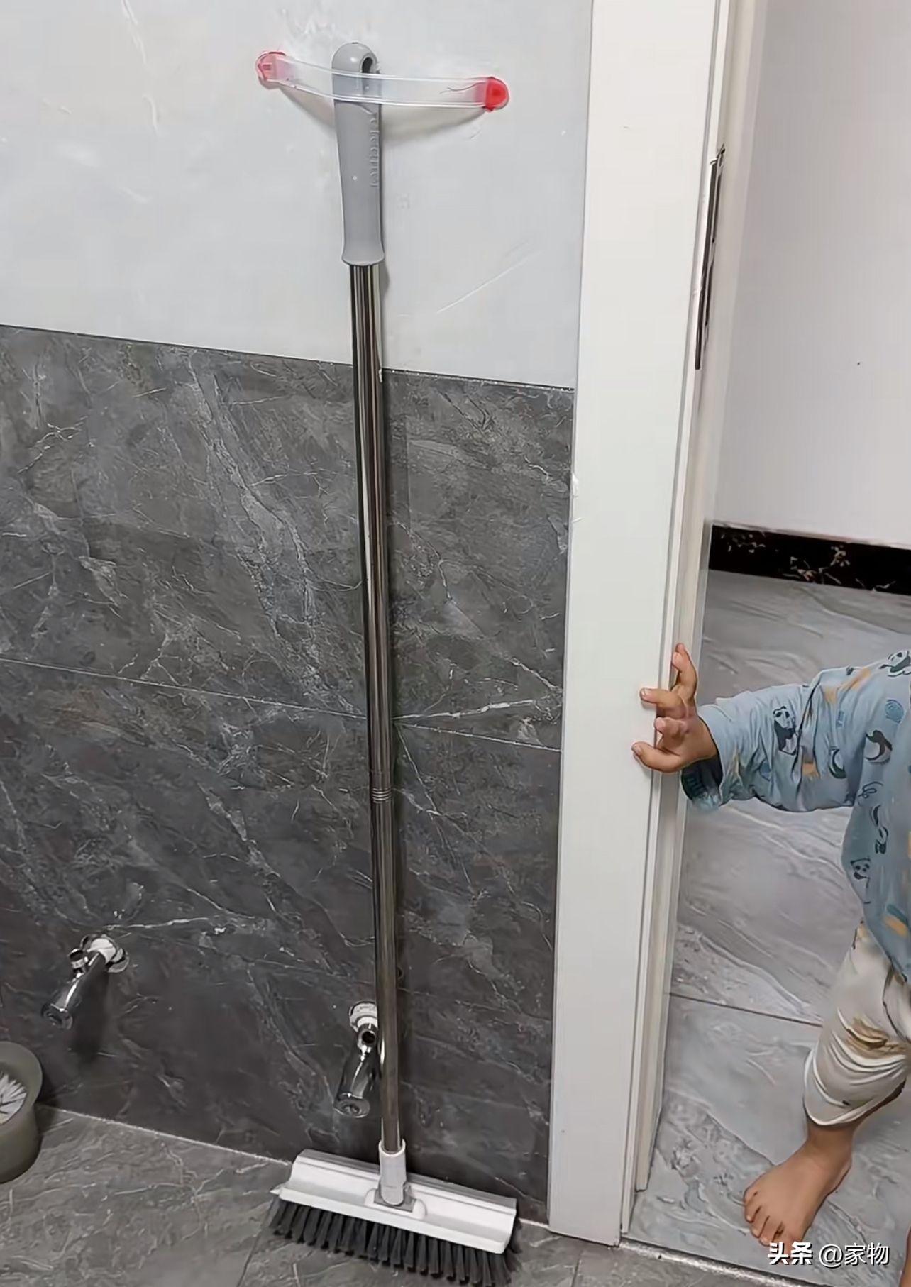 家裏的掃把和拖把,也同樣可以用牛奶箱提手當做支架,貼到牆面上,每次用完後直接將把手卡在裏面,靠牆就可以直立擺放了,不僅不會佔地兒,還能妥善收納。
