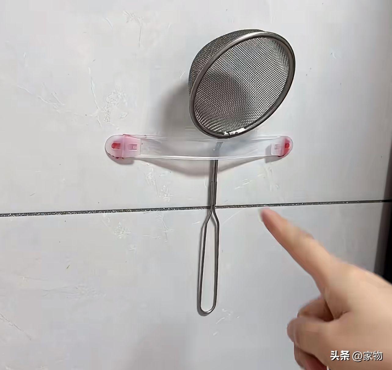 沒錯,將這牛奶箱提手用熱熔膠粘在廚房牆面瓷磚上,用來掛各種各樣的餐具廚具都不錯,將牆面空間充分利用起來,也算是減少了空間浪費,且烹飪時隨手就能拿到。