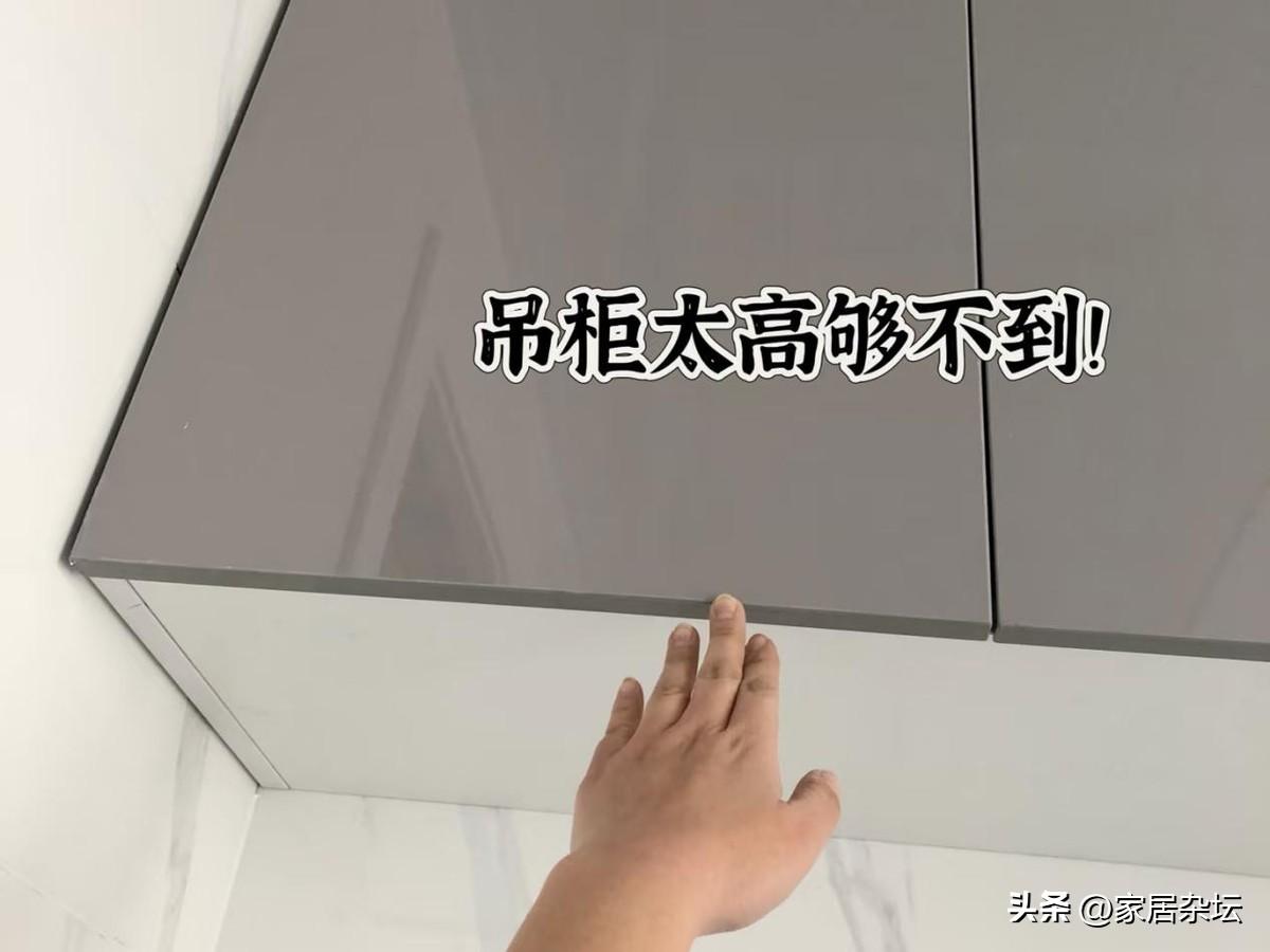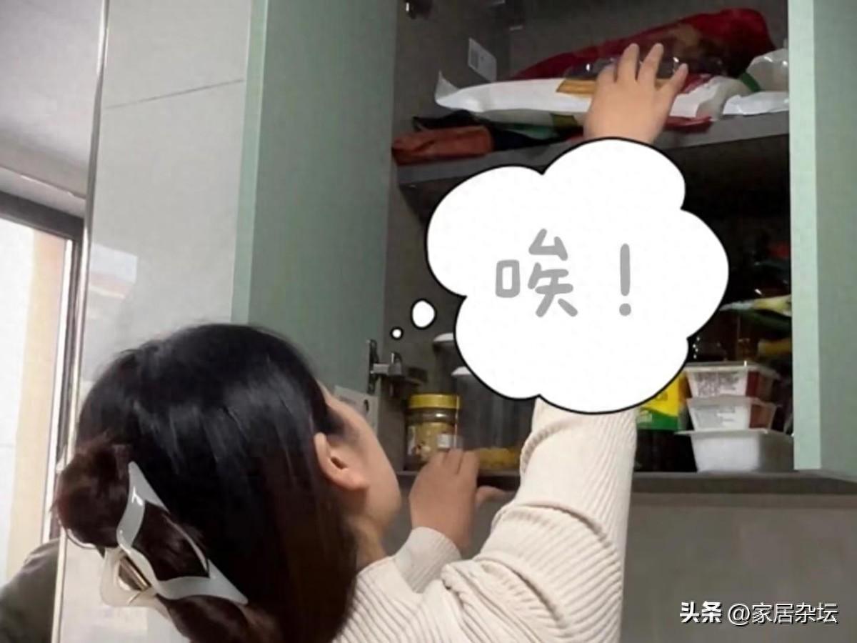 對於這個高度的吊櫃,你會發現,往裏面放東西,是夠不着的,需要搬凳子。以後找東西,也要搬凳子。放東西,找東西,都是很麻煩的。