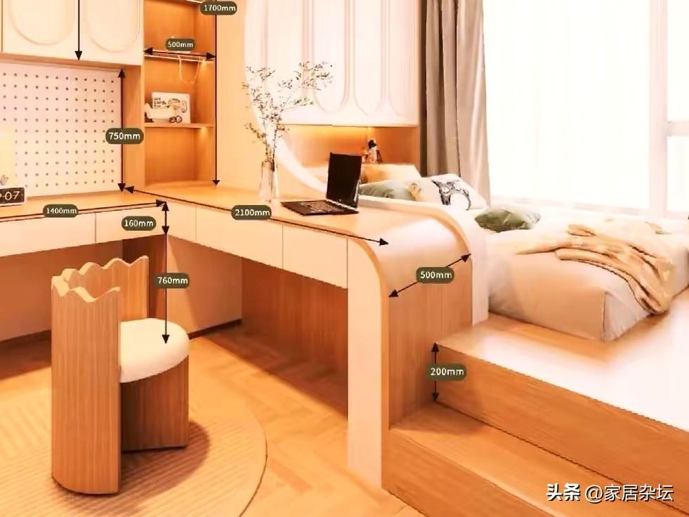 ②、高度的問題。半高牀,一般建議高度不要高於1米2,避免產生壓抑感。然後,根據這些尺寸來設計書桌。
