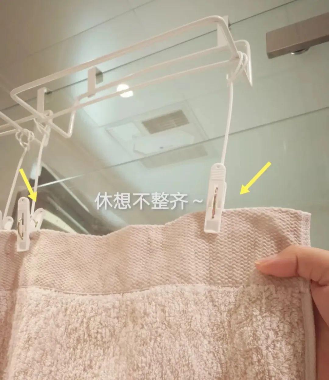 就這小小毛巾, 咱可以用毛巾歸位架解決,其實就是兩頭帶夾子的衣架。