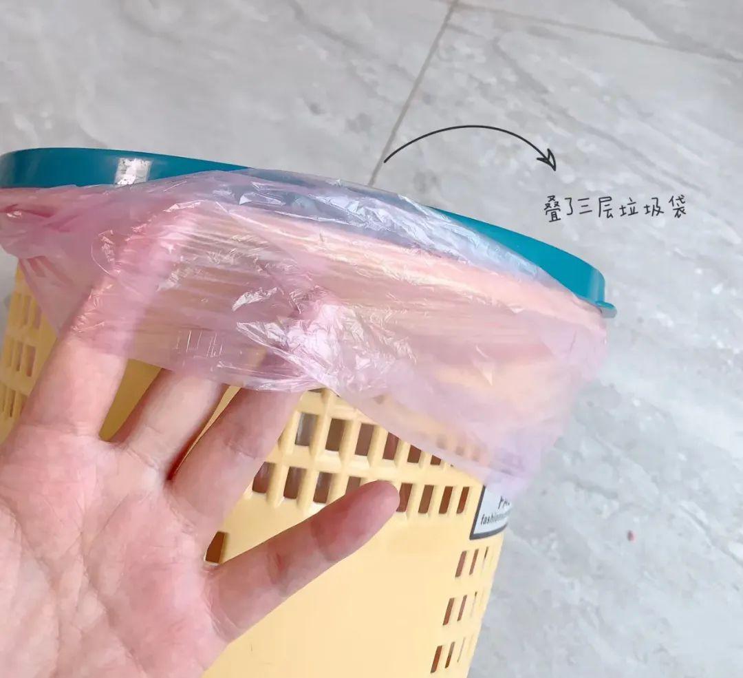 解決這個小痛點的技巧是:咱可以一次性多套一層,每次倒垃圾只需要拿掉最上面一層,不用次次彎腰,屢試不爽~