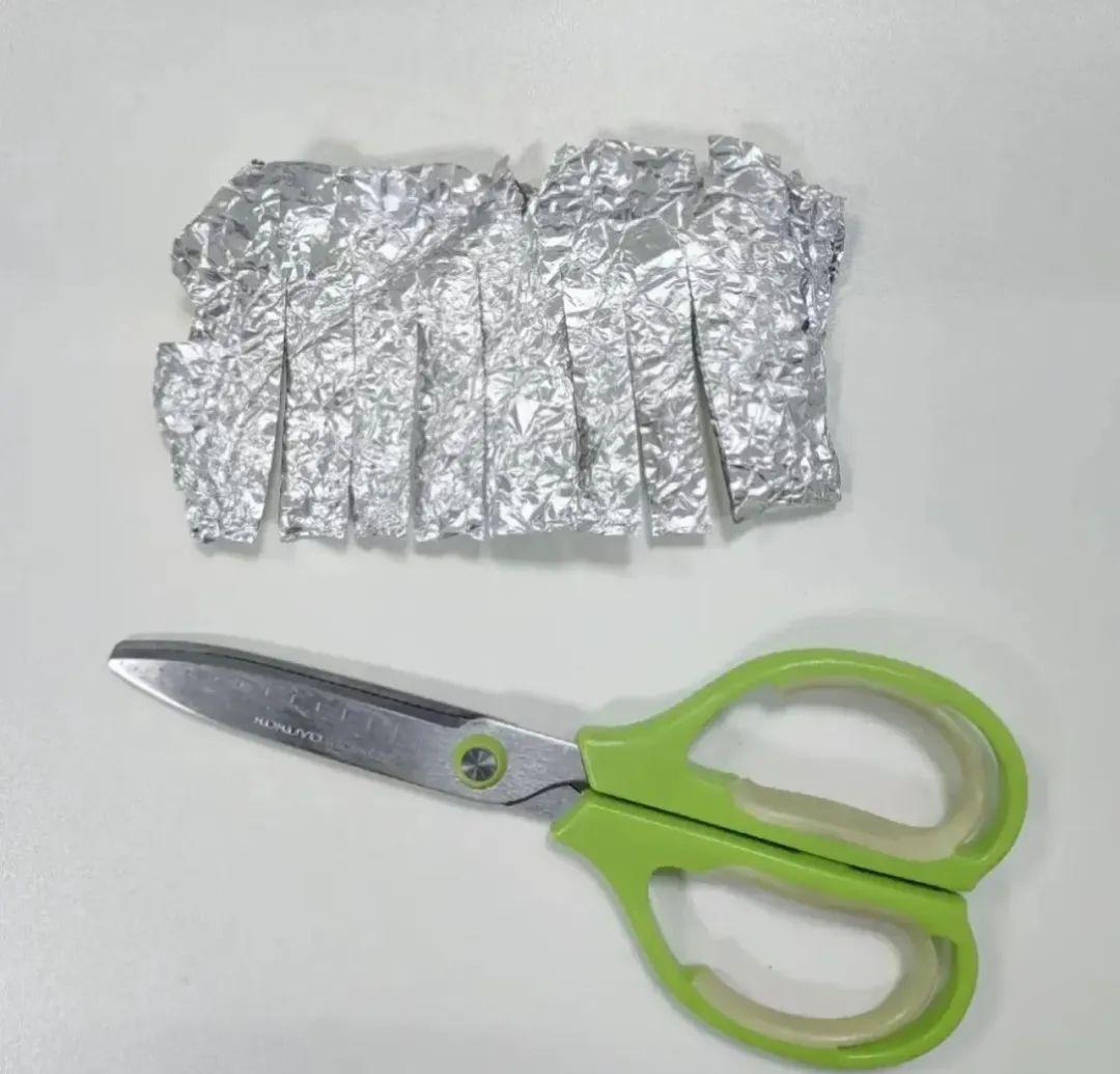 另外,用過的錫紙拿出剪刀剪剪剪,剪刀還能變鋒利!