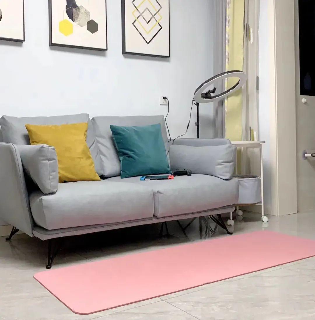 來回折騰了幾次,我直接擺爛了,丟掉地毯,把家裏閒置的瑜伽墊展開,墊在沙發旁,如此輕鬆多了,瑜伽墊也很容易清潔,溼紙巾有一擦即可,成本也低,隨便換新,真不知道我以前在執着什麼奢華地毯~