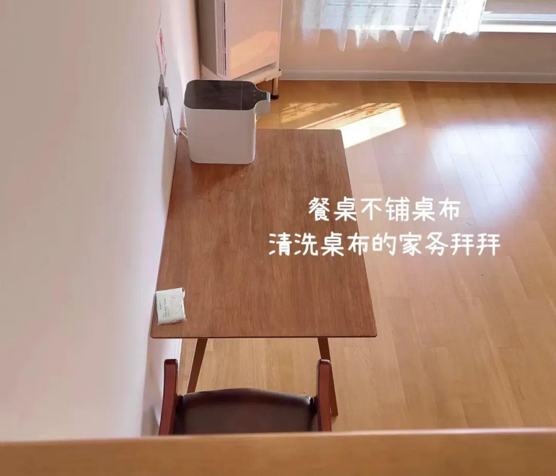 再比如餐桌上的桌布,其實不用桌布,桌面更好擦。