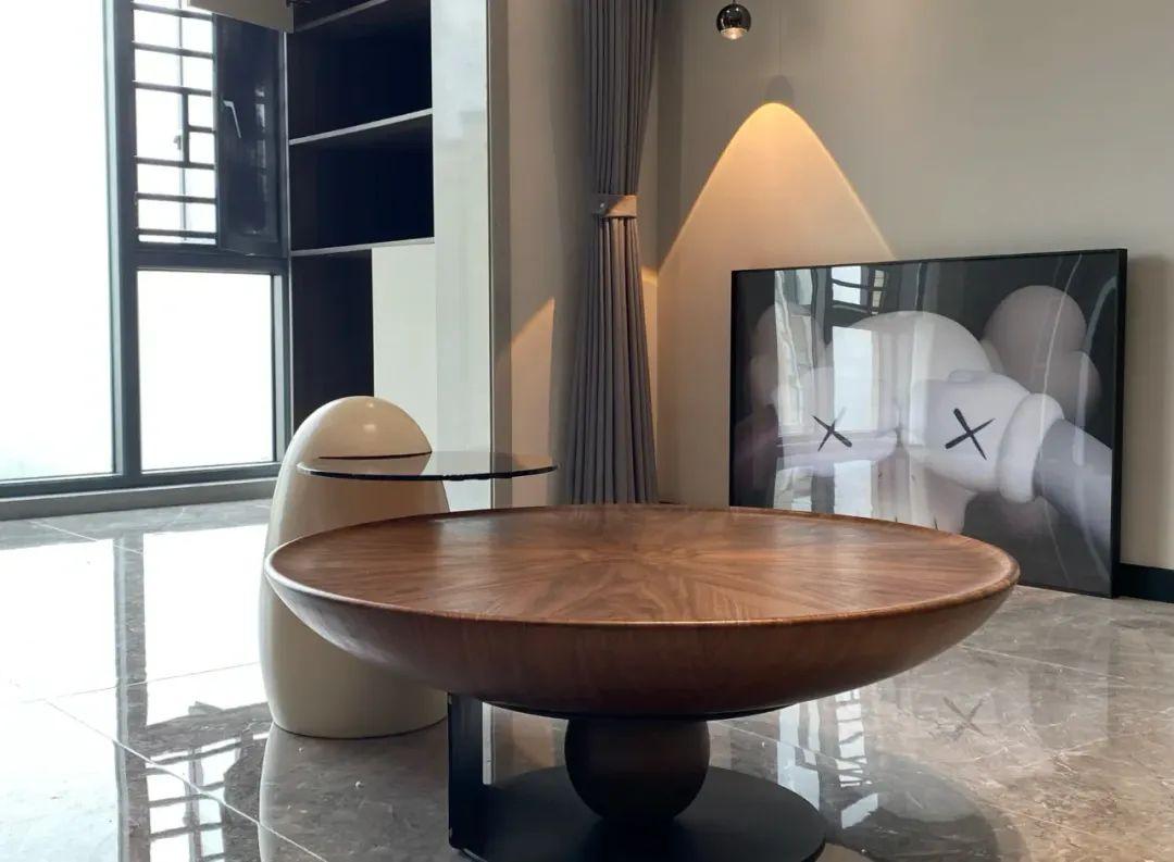 看着很有藝術感,但是這種特殊造型的傢俱,如果用全實木做,那造價必定很高,因爲要找到口徑這麼大的原木,而且硬度要高,才能做出這種造型。