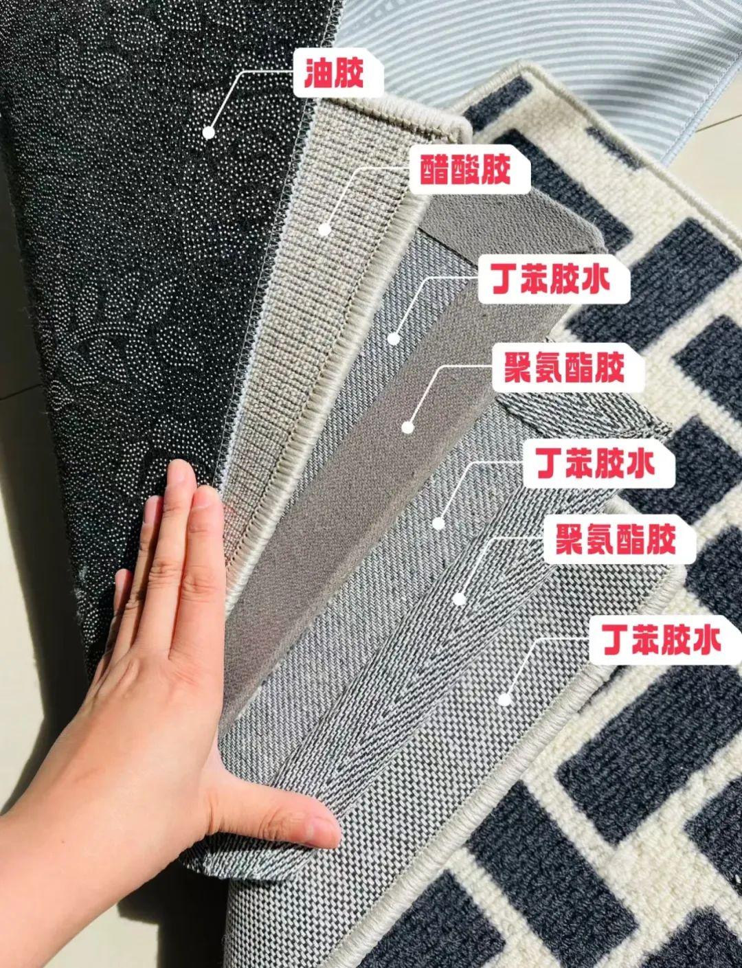 多數地毯背面都有膠水,面積越大用量越多,甲醛也就含量越高,特別是廉價地毯。如果你收到的地毯散發着刺鼻的氣味,這就是有毒有害的信號,有小孩老人的家庭一定不能用。