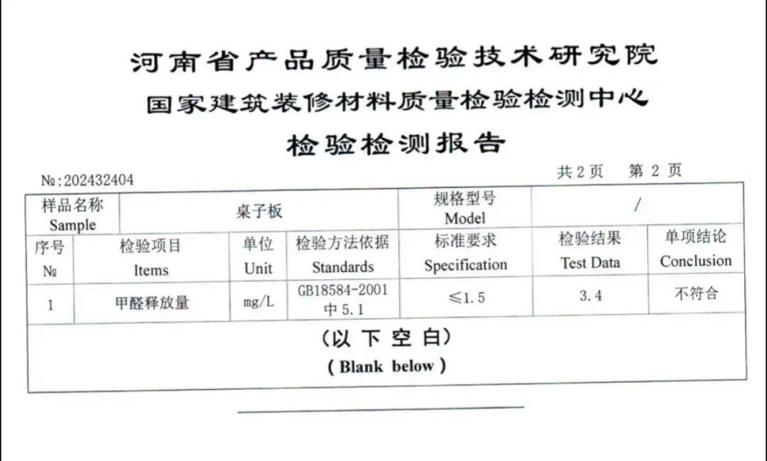 一開始找商家理論,商家還不承認,直願意給退貨退款,他把這個桌子寄到檢測機構檢測,才實錘甲醛超標。